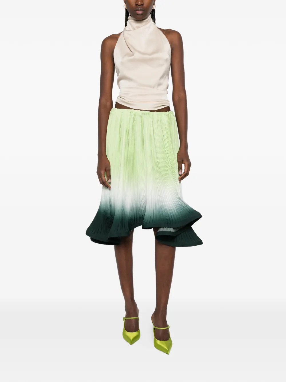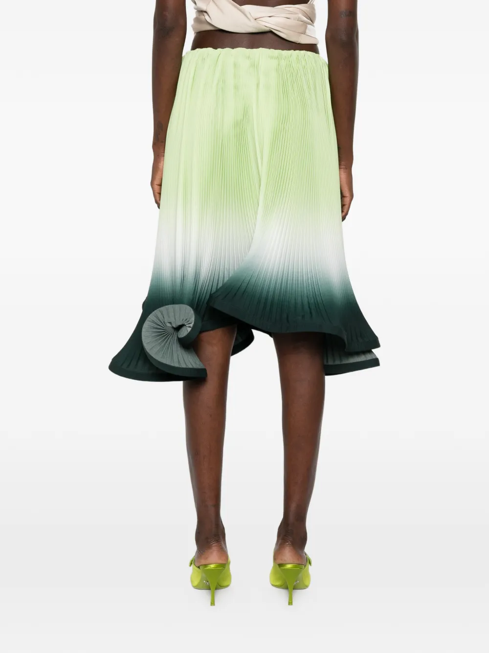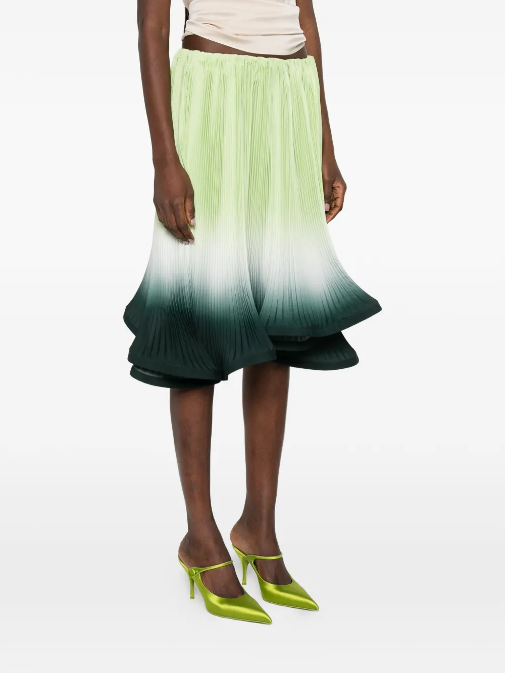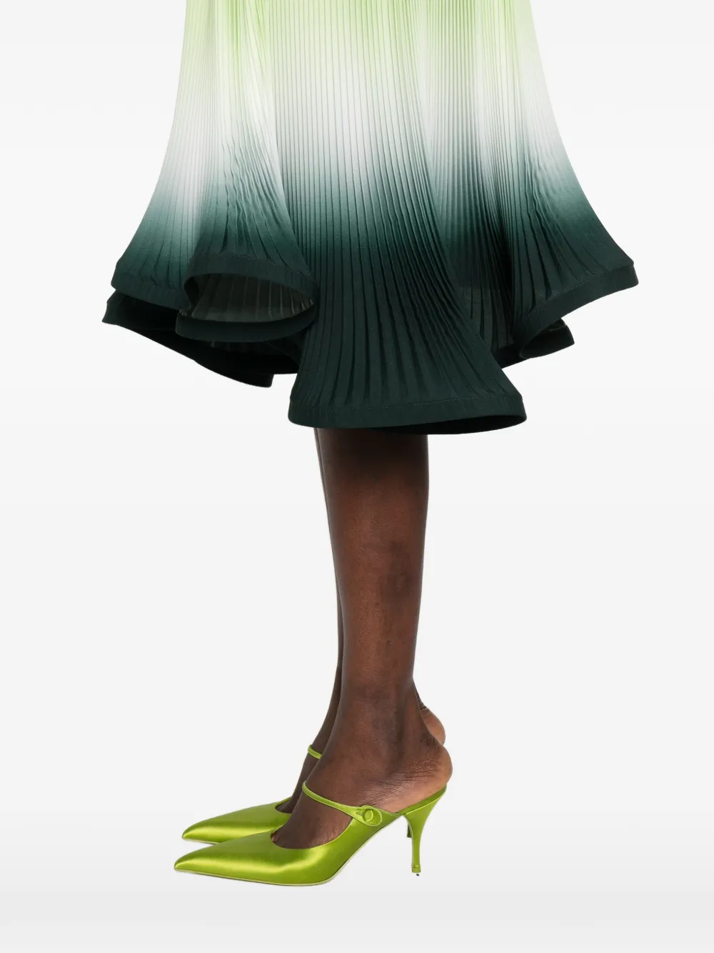 Зеленая с градиентом, плиссированная с эффектом деграде, расклешенный подол
