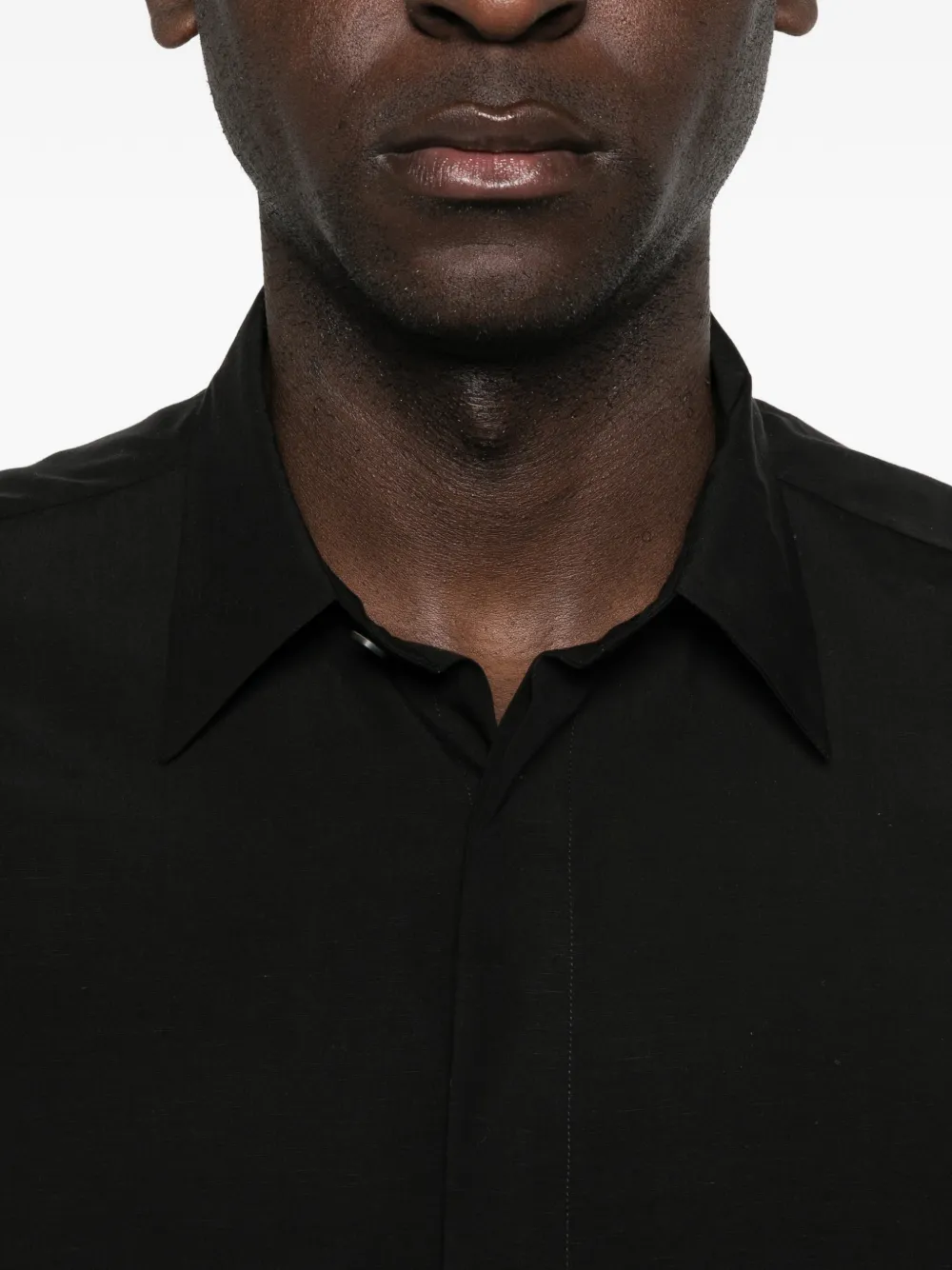 Черная рубашка с длинными рукавами, отложным воротником и застежкой на пуговицы