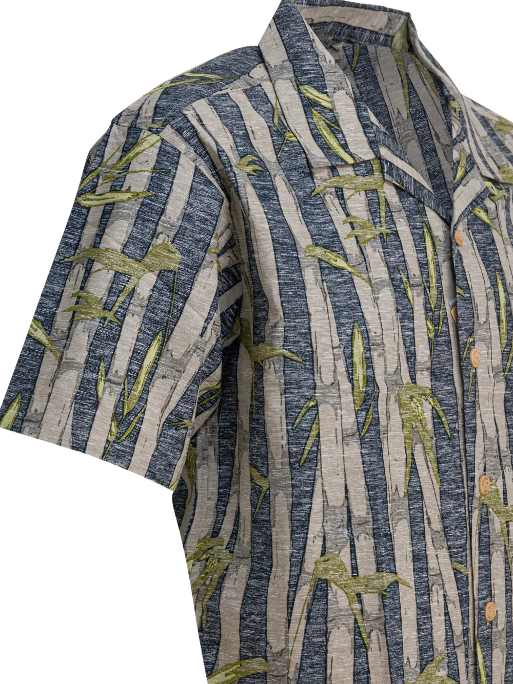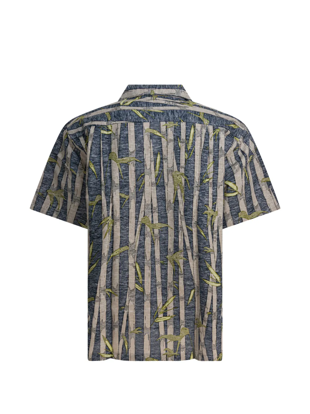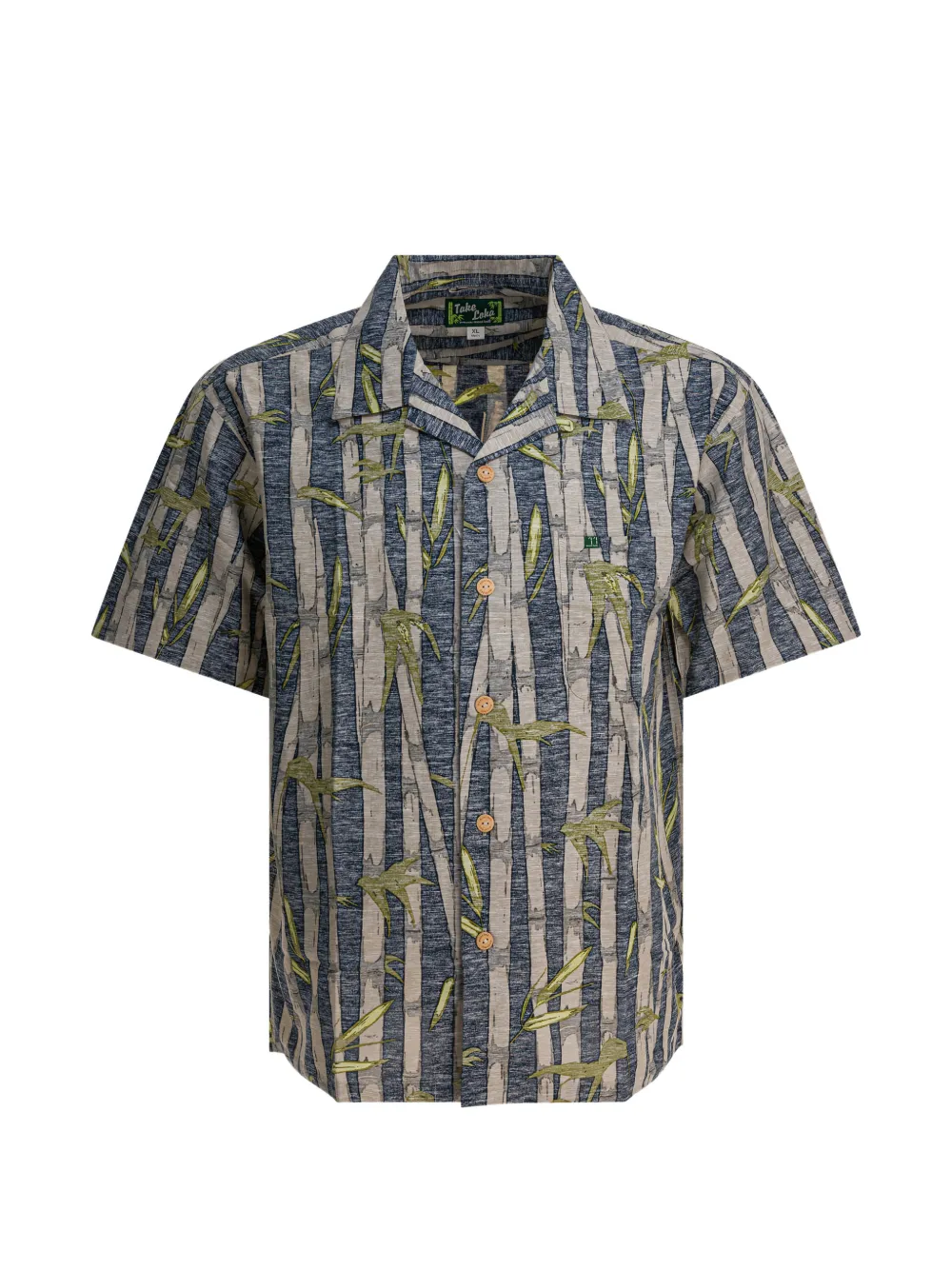 Сероe рубашка с принтом из бамбука, застежкой на пуговицы, короткими рукавами, отложным воротником и нагрудным карманом