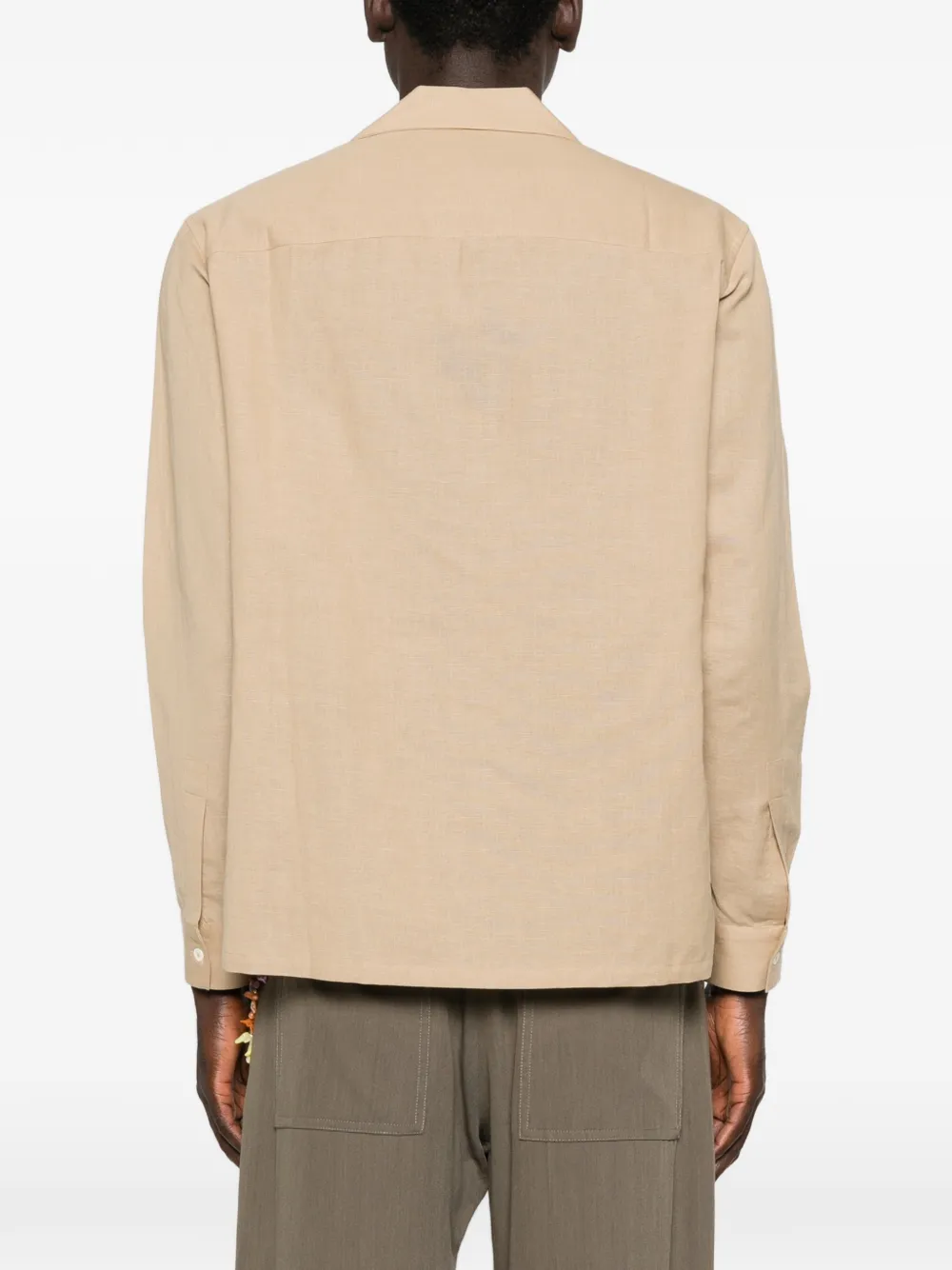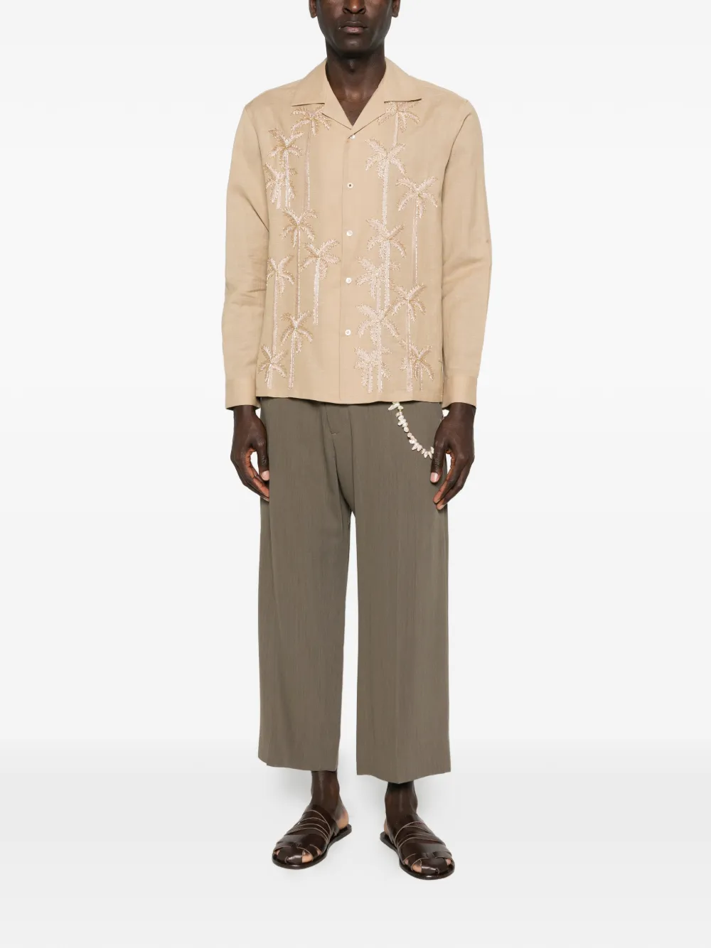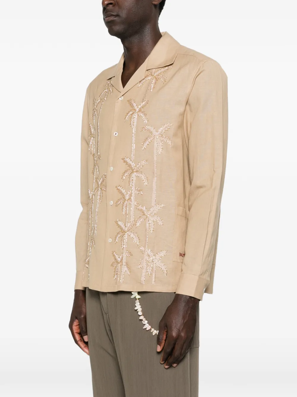 Бежевый цвет, застежка на пуговицы, накладной карман, украшение в виде пальмы, отложной воротник-кенгуру, длинные рукава