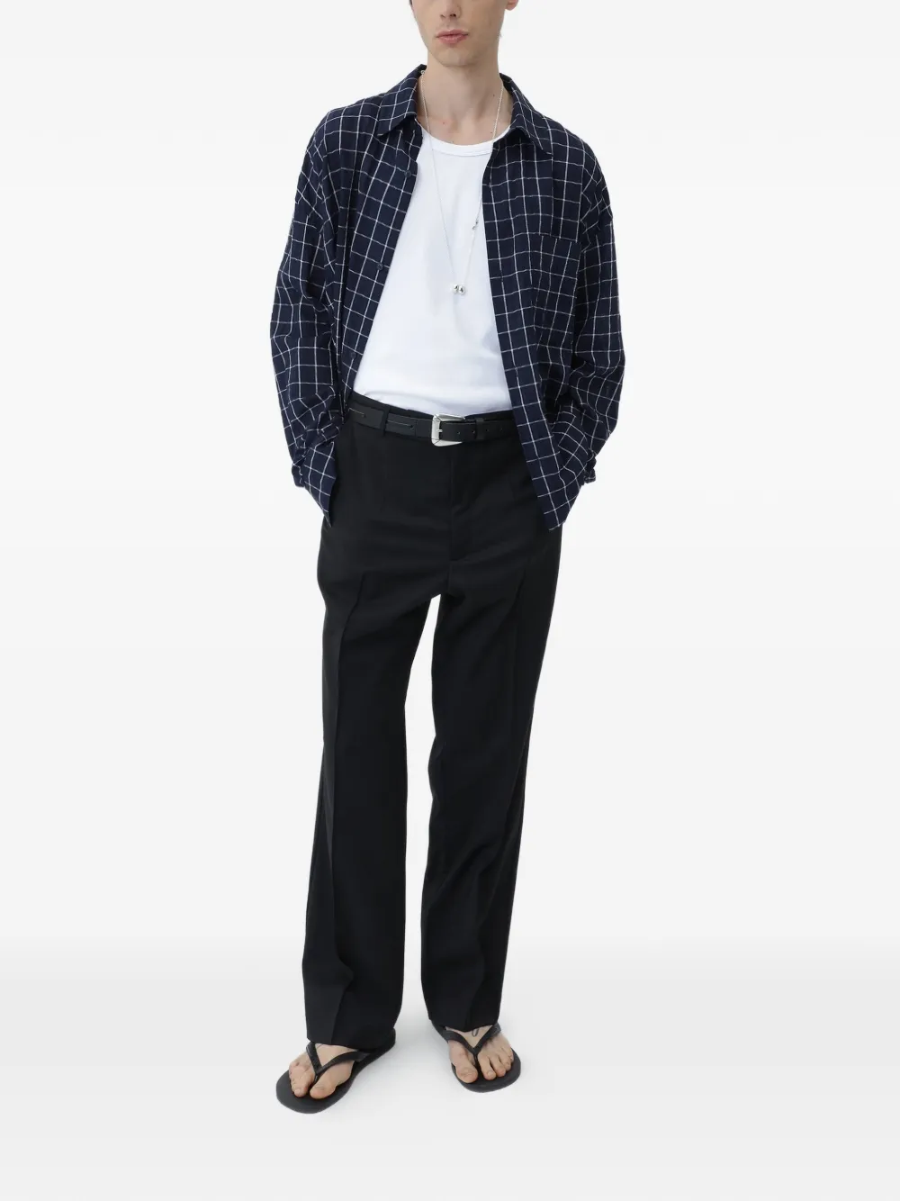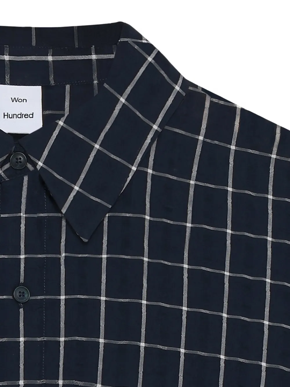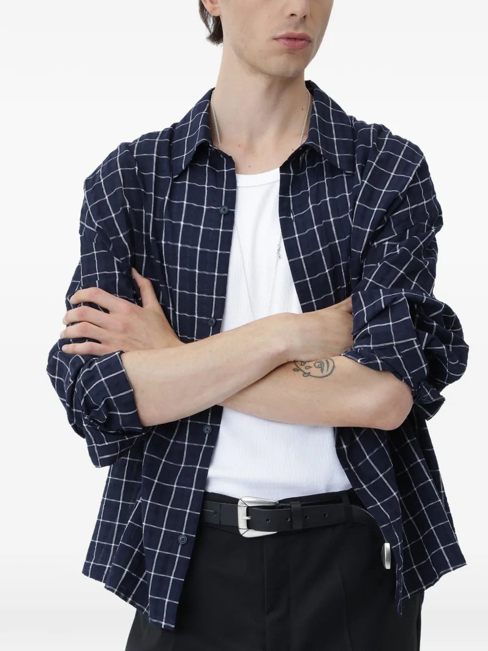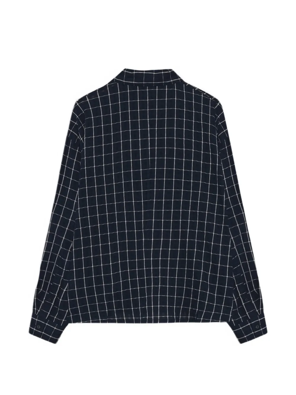 Темно-синяя рубашка в клетку, застежка на пуговицы, длинные рукава, отложной воротник