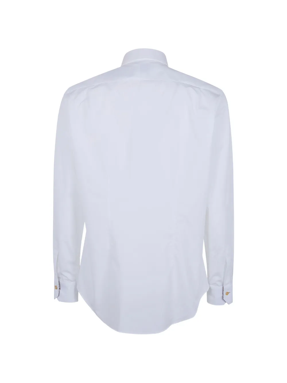 Белая рубашка с застежкой на пуговицы, манжетами на пуговицах, длинными рукавами и отложным воротником