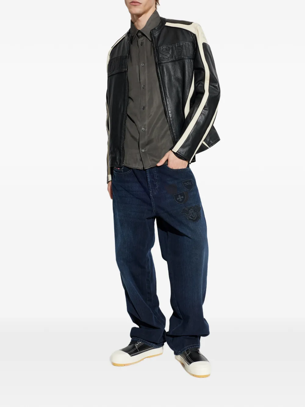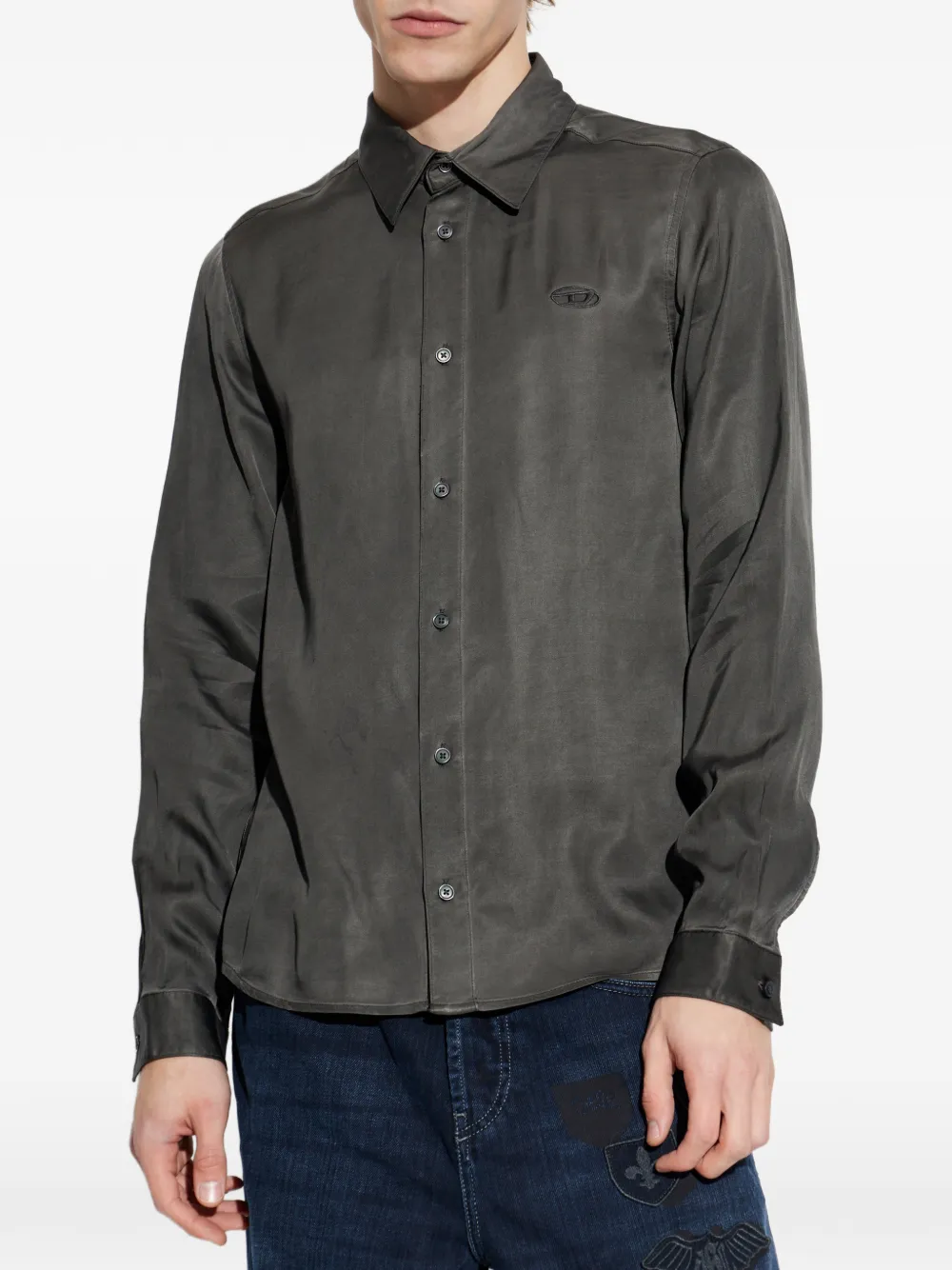 Рубашка с вышитым логотипом Diesel, серый
