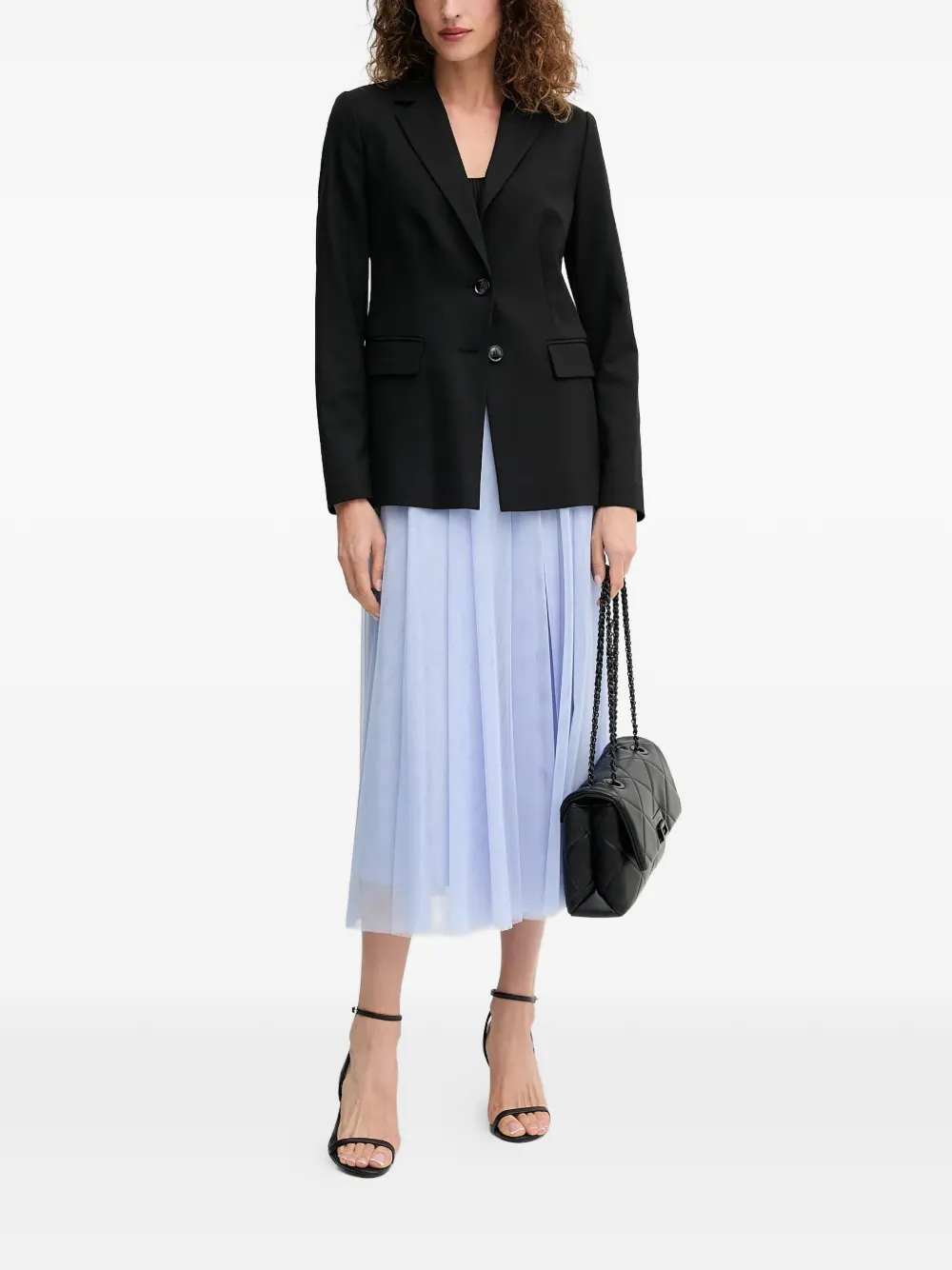 Светло-голубой А-силуэт, тюлевая накидка, плиссированный дизайн, эластичный пояс с логотипом, прямой подол