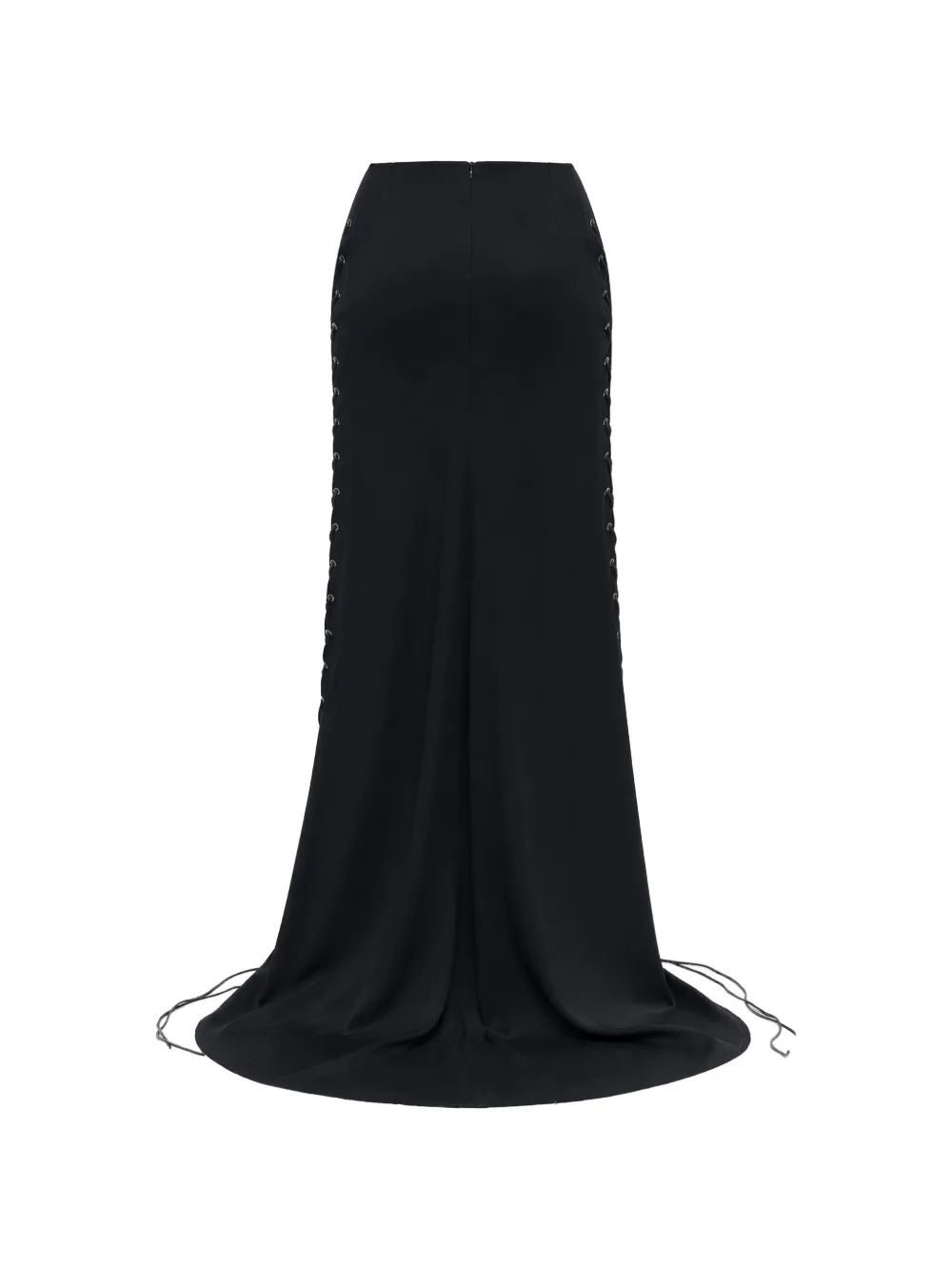 Черная атласная ткань, боковые шнурки, длина макси