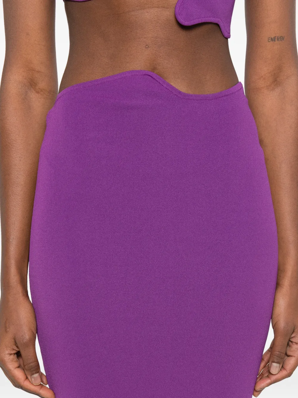 Пурпурная юбка с прямым подолом, вырезами на талии и высокой посадкой