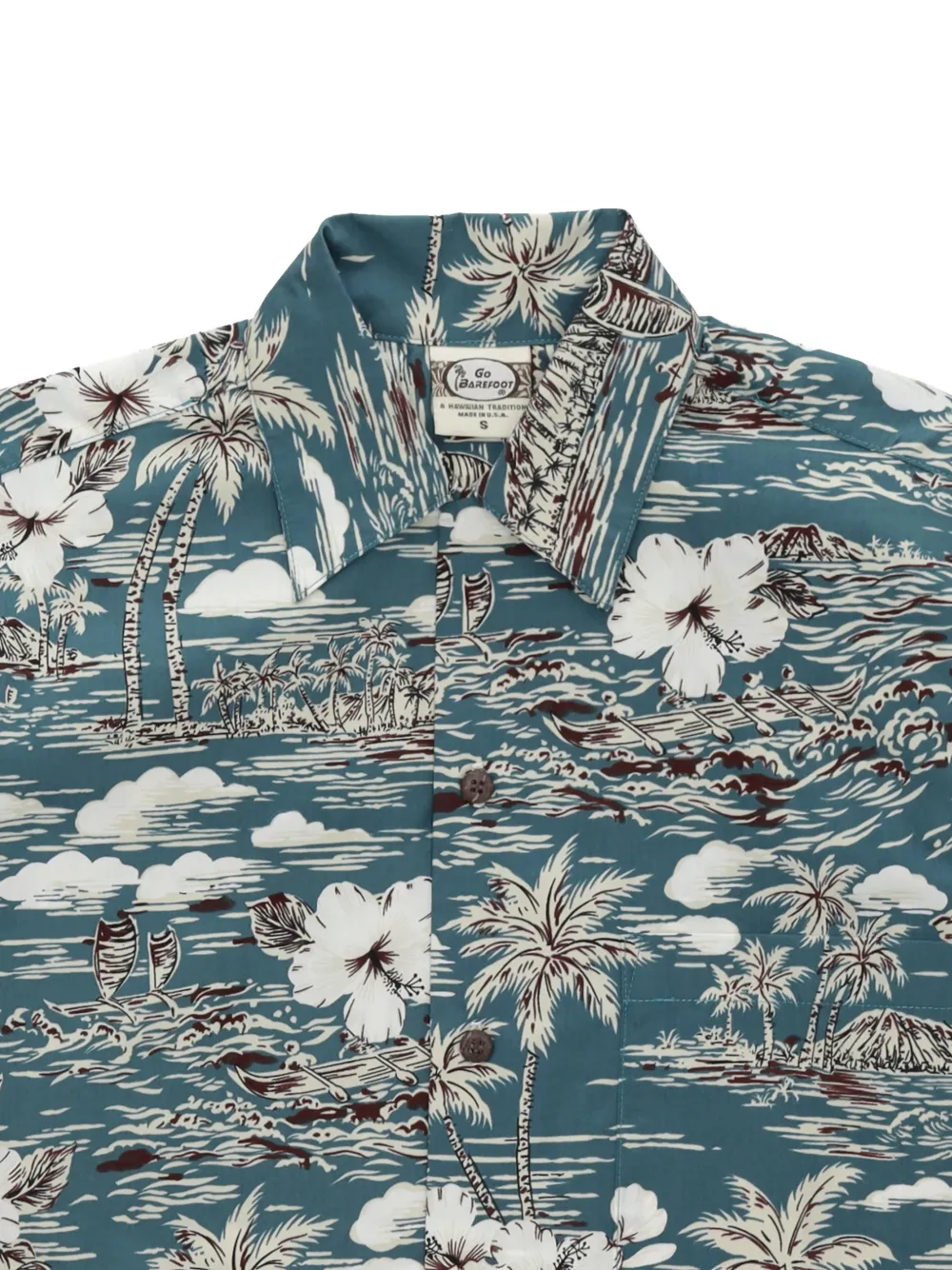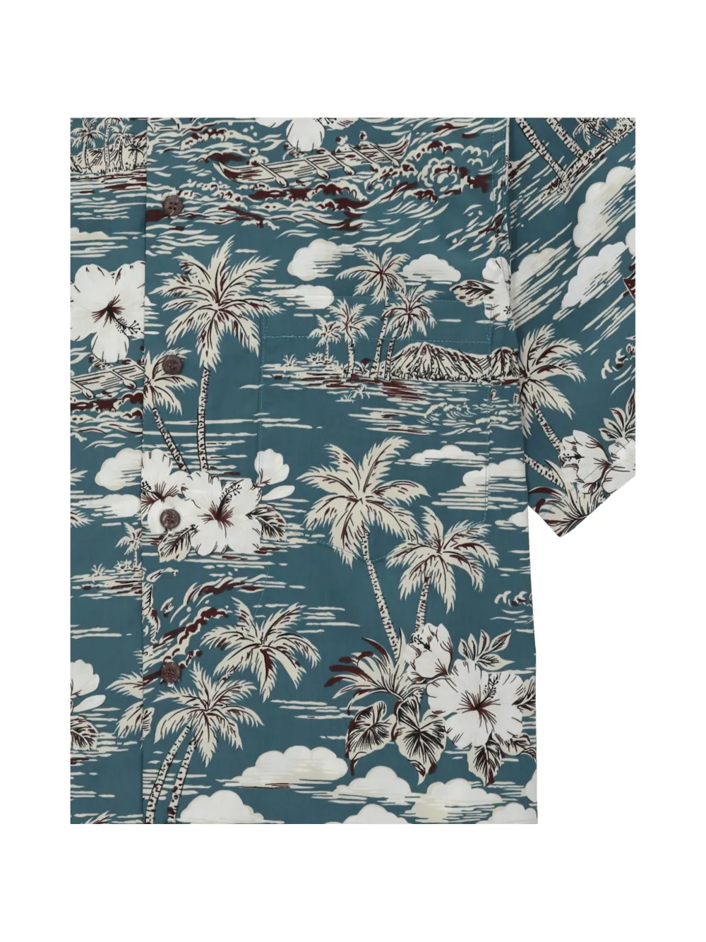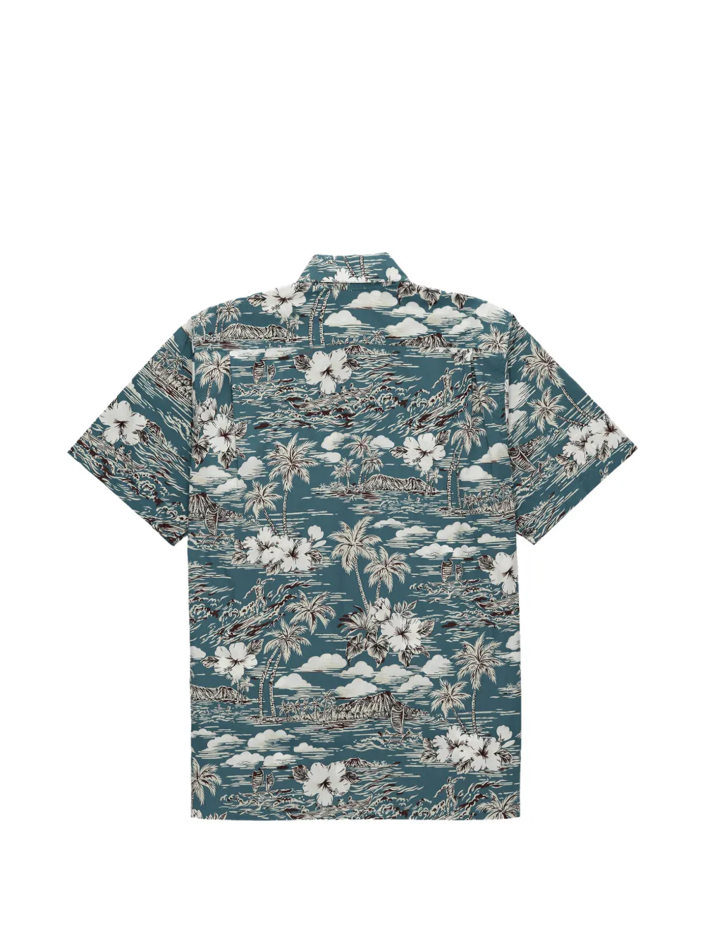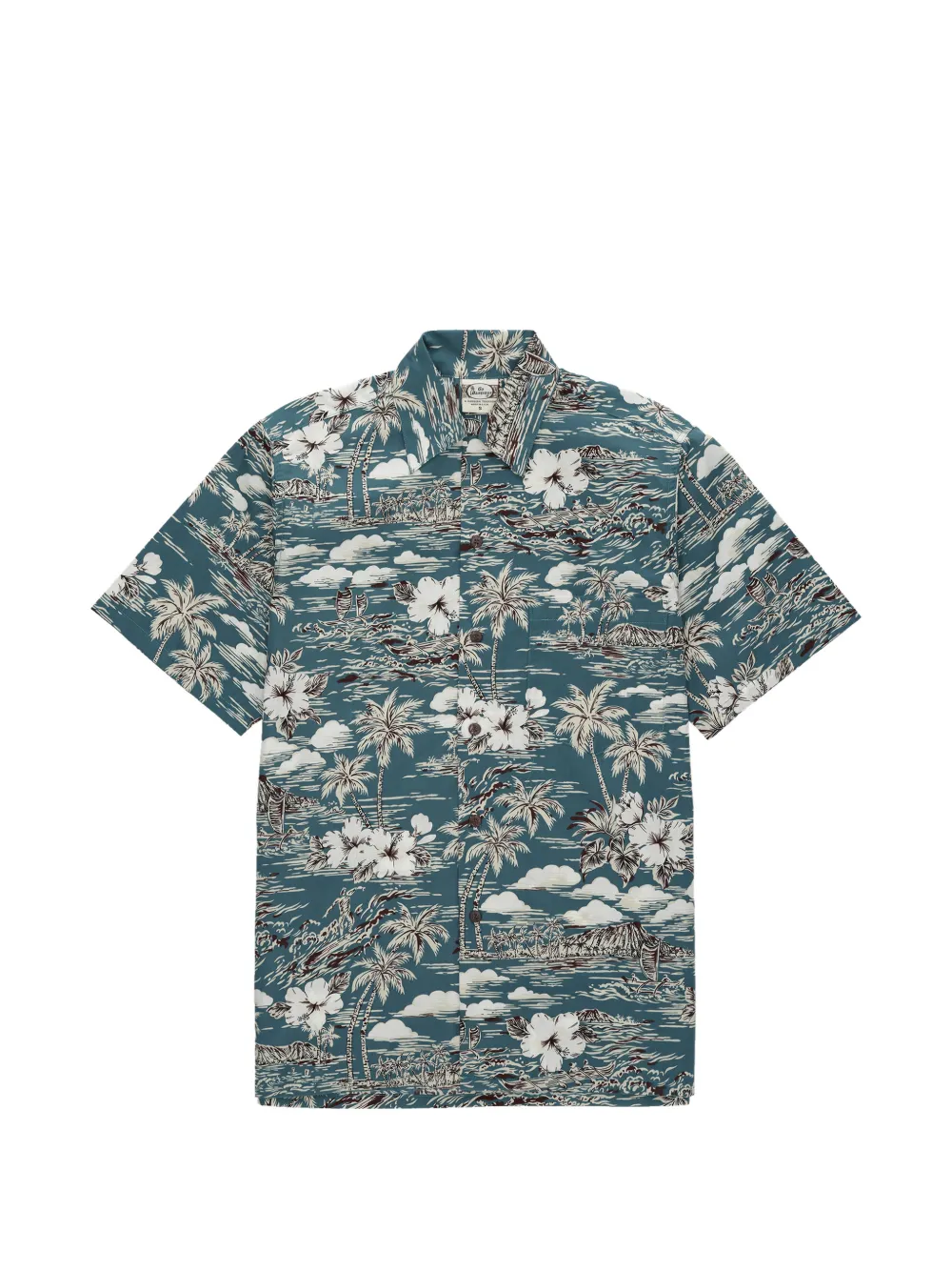 Темно-серая рубашка с графическим принтом, классическим воротником, короткими рукавами, нагрудным карманом и застежкой на пуговицы