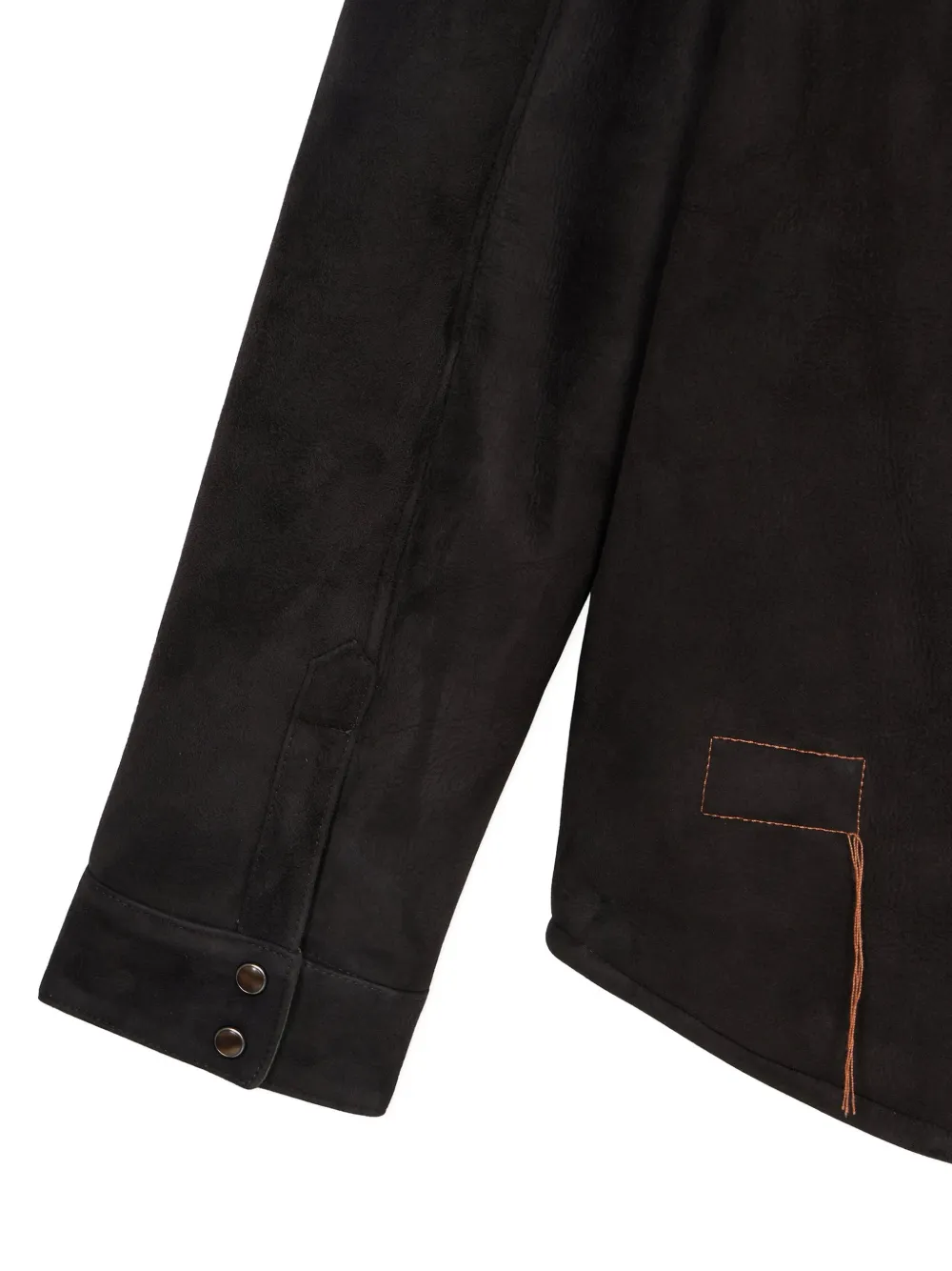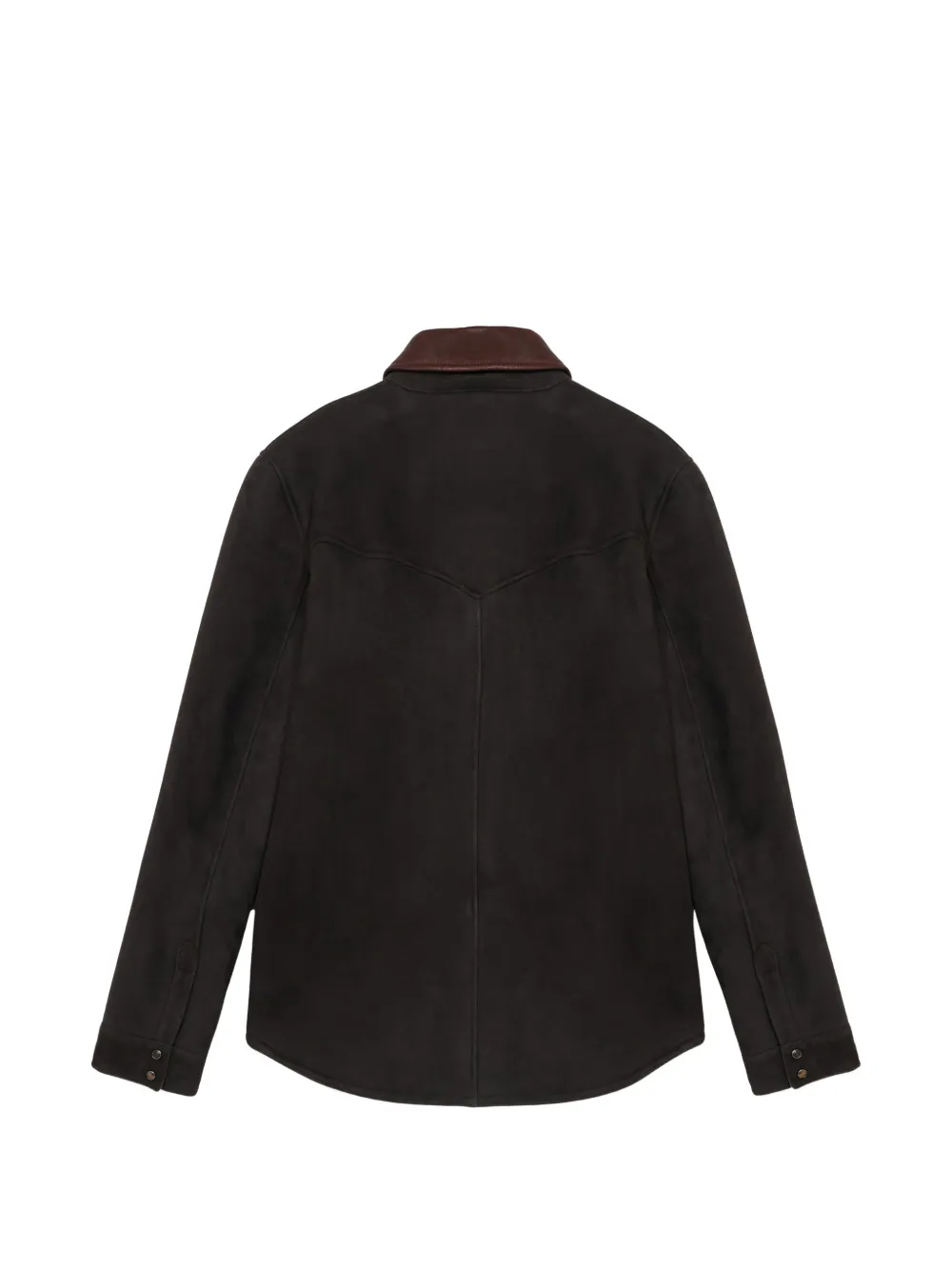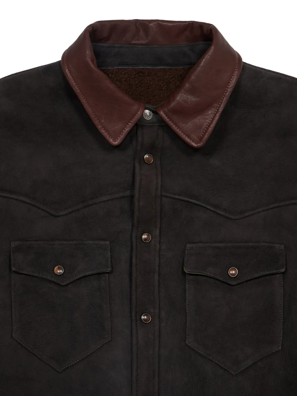 Коричневый кожаный воротник, застежки на кнопках, длинные рукава, стандартный крой