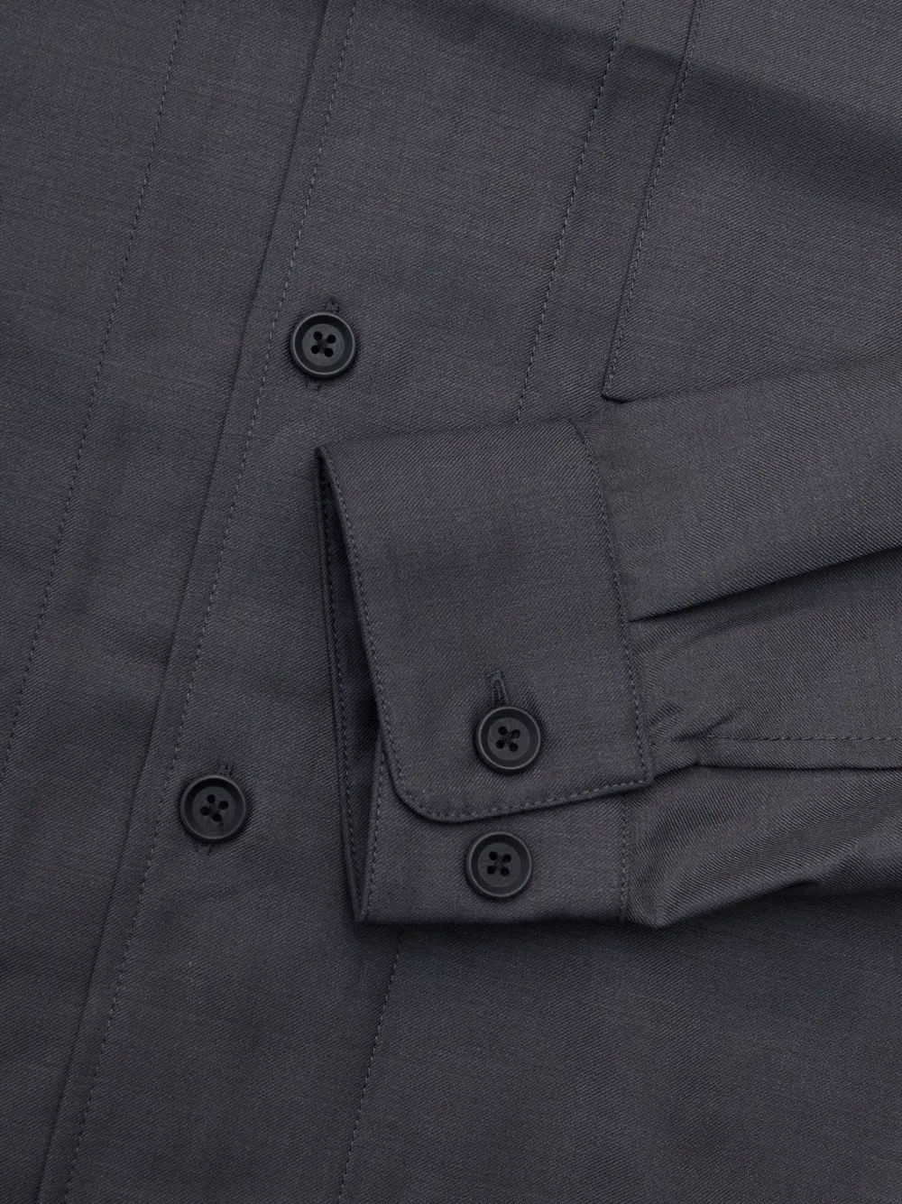 Серый текстурированный квадратный накладной карман на груди, застежка на пуговицы спереди