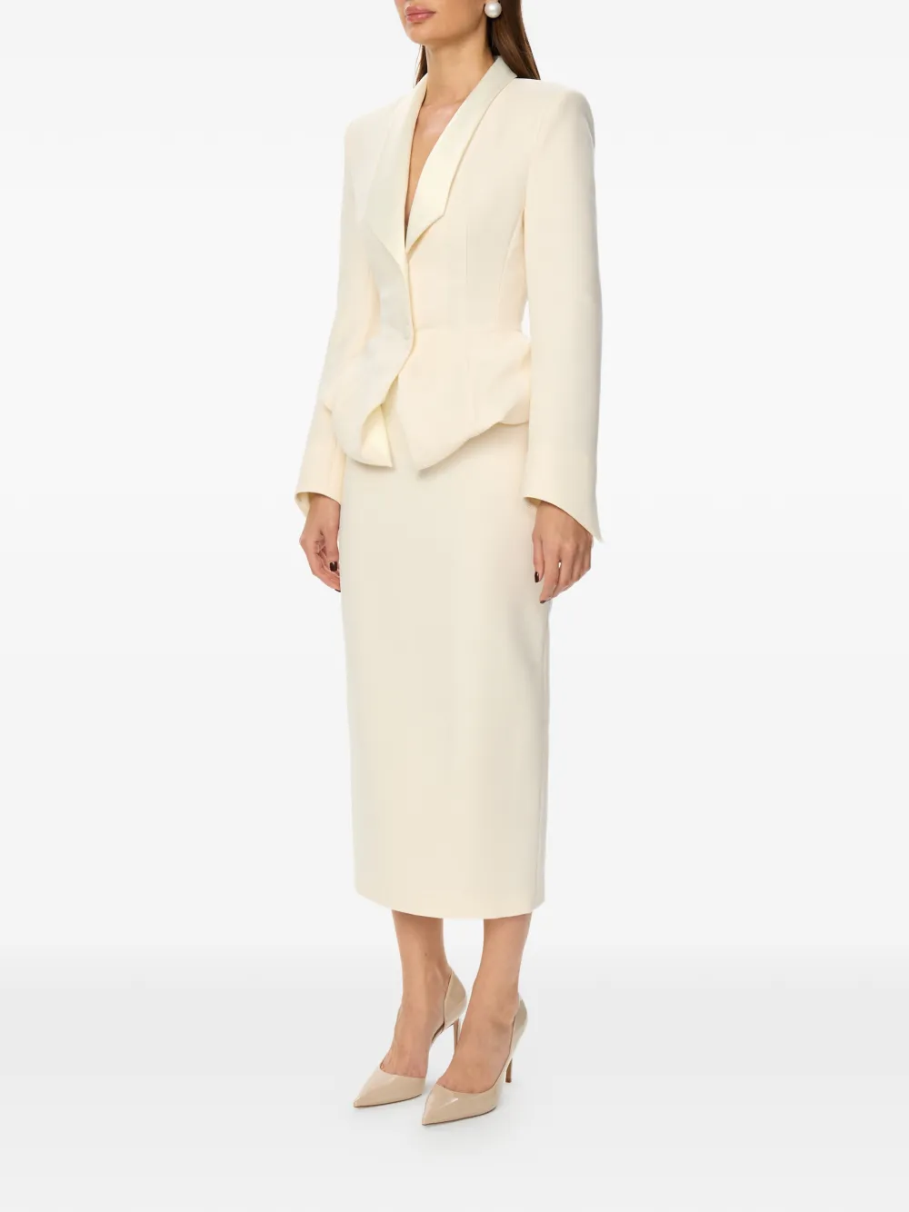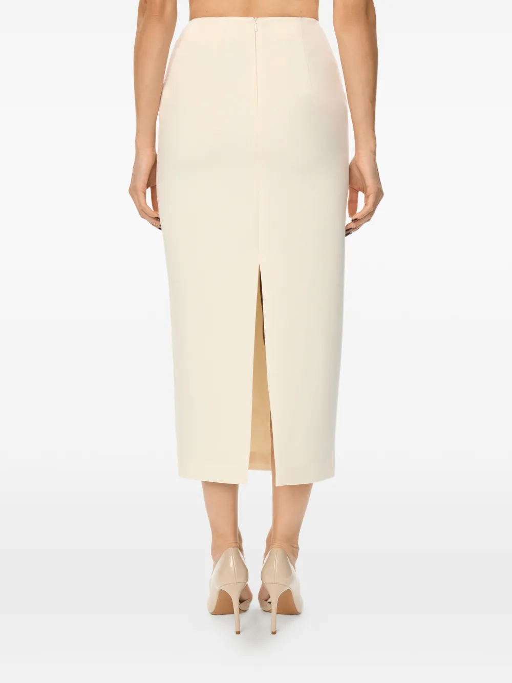 Белая юбка прямого кроя макси длины с разрезом сзади
