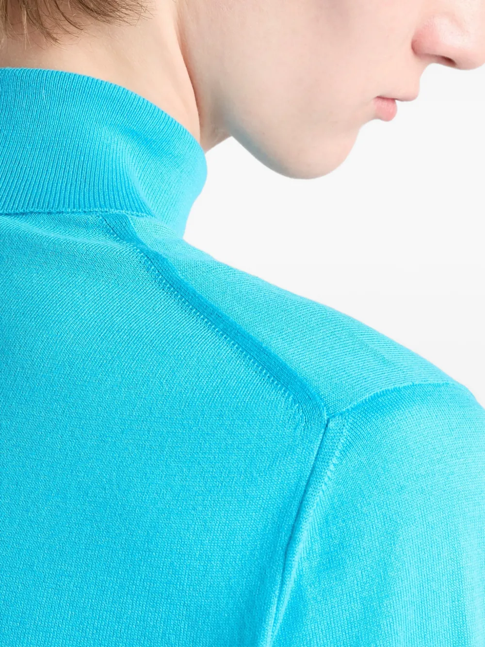 Светло-голубой в рубчик вязаный водолазка с вышитым логотипом, стандартный крой, рубчатые манжеты и подол