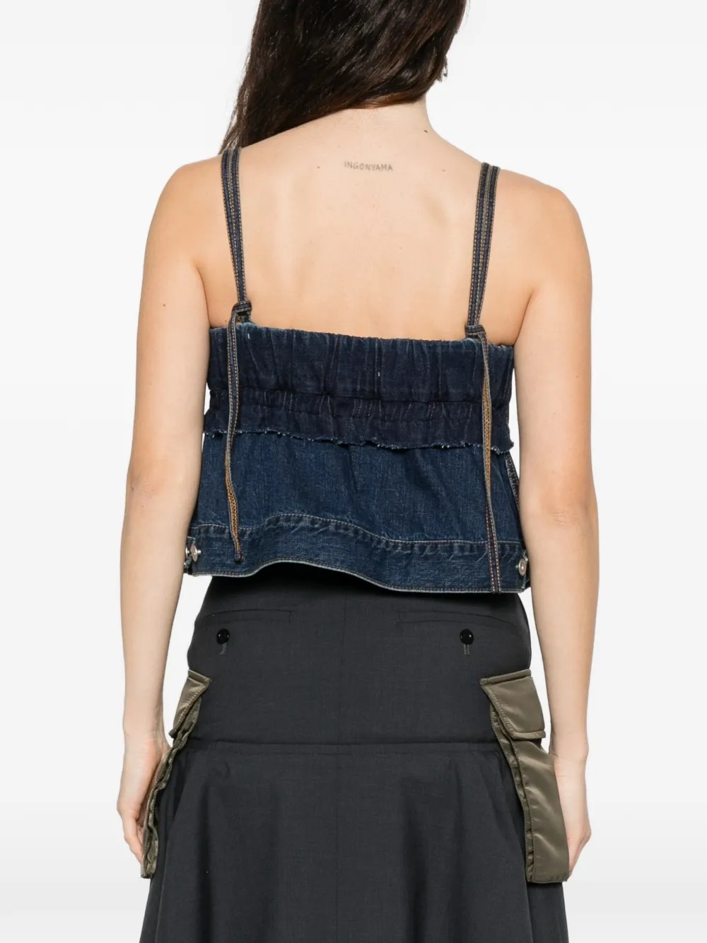 Голубой хлопковый топ с регулируемыми лямками, завязками и необработанным коротким краем