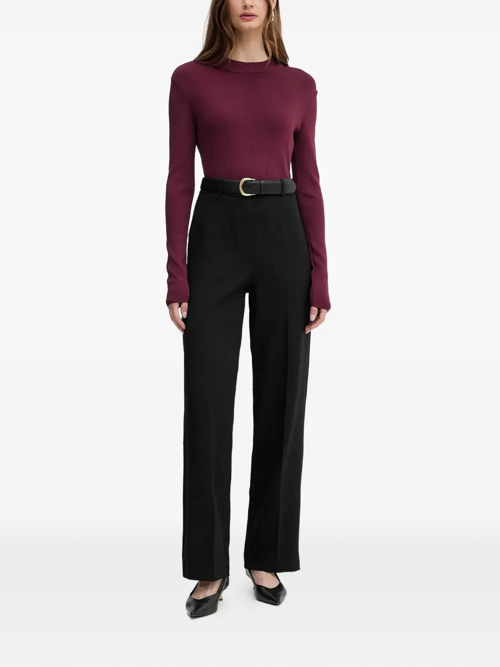 Красный вязаный джемпер в рубчик с круглым вырезом и длинными рукавами