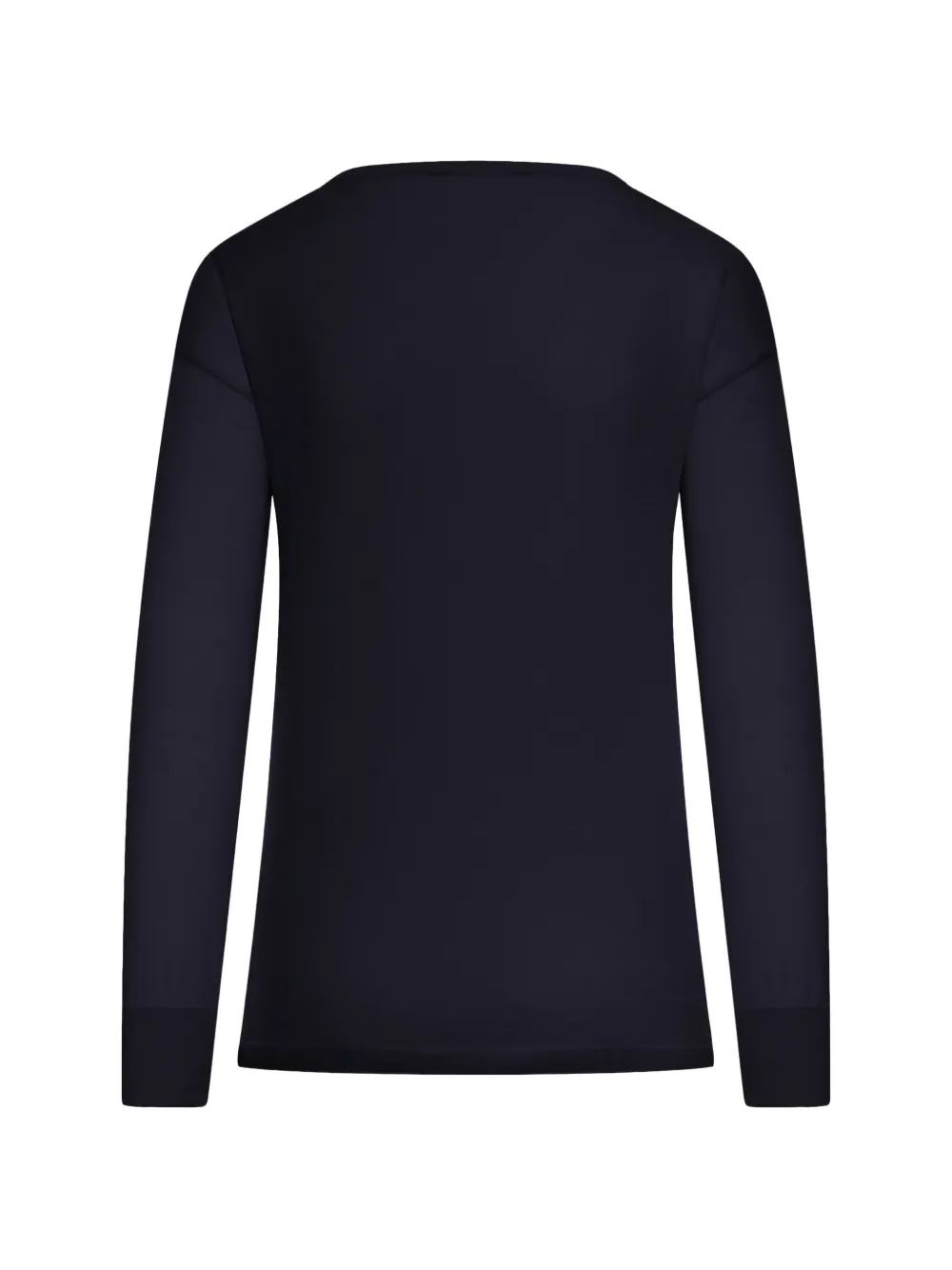 Темно-синий цвет, ребристые края, длинные рукава, боковая застежка на пуговицы, прямой низ