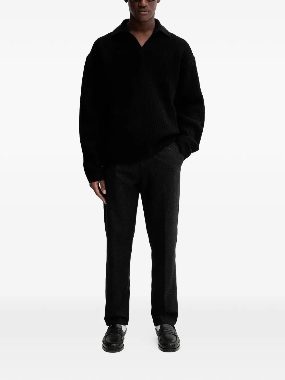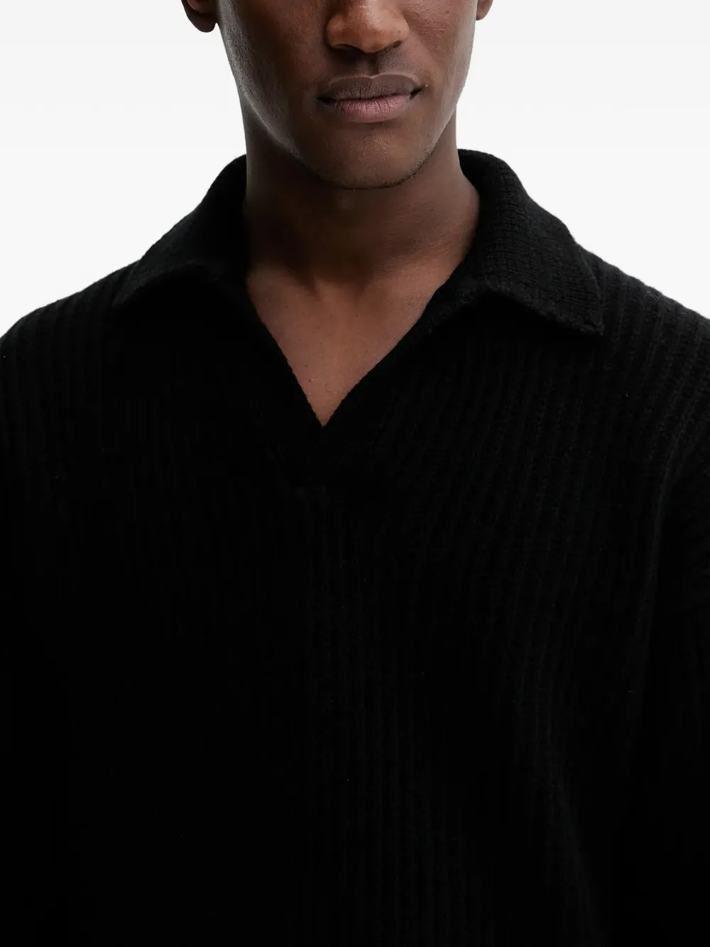 Черный вязаный трикотаж с V-образным вырезом и длинными рукавами