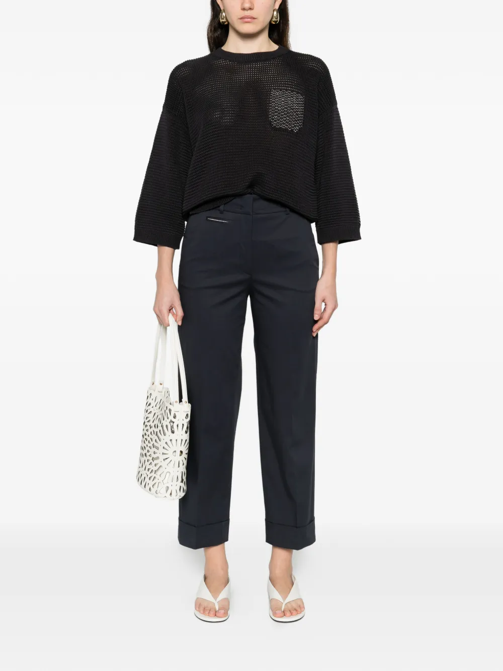Синий, вязаный дизайн, нагрудный карман, рукава три четверти, круглый вырез, прямой подол