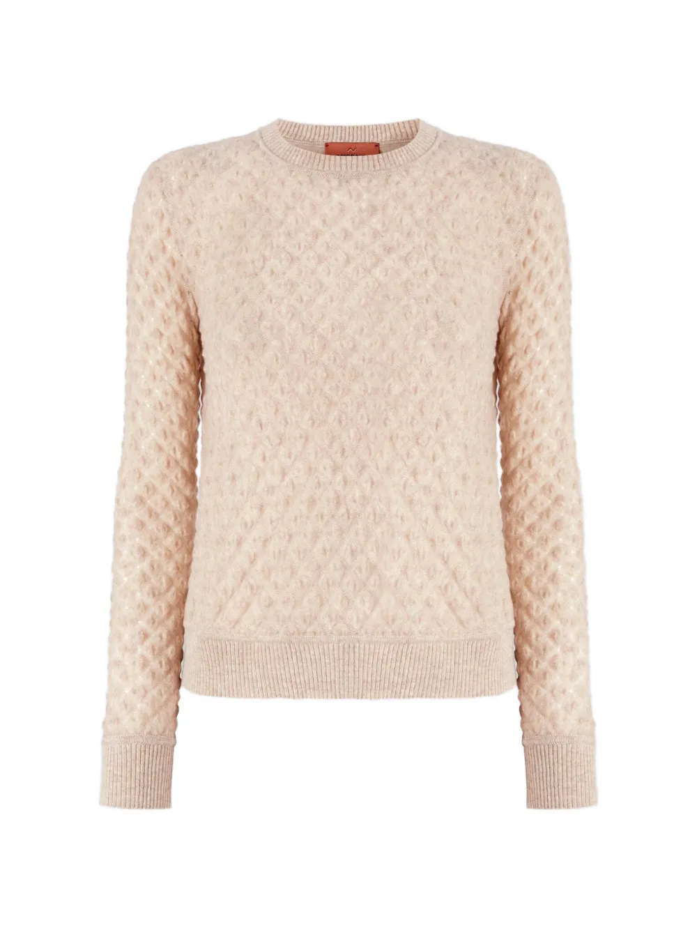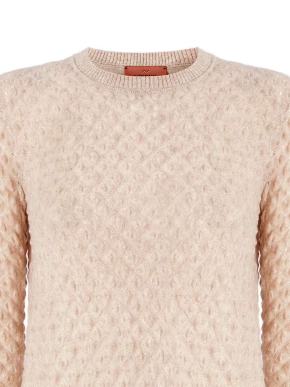 Бежевый, с ребристой кромкой по низу, круглый вырез, длинные рукава, ребристые манжеты. Полученный вами товар может незначительно отличаться от изображенного на фотографии. Это связано с ручной работой, с которой изготавливаются все изделия Missoni.
