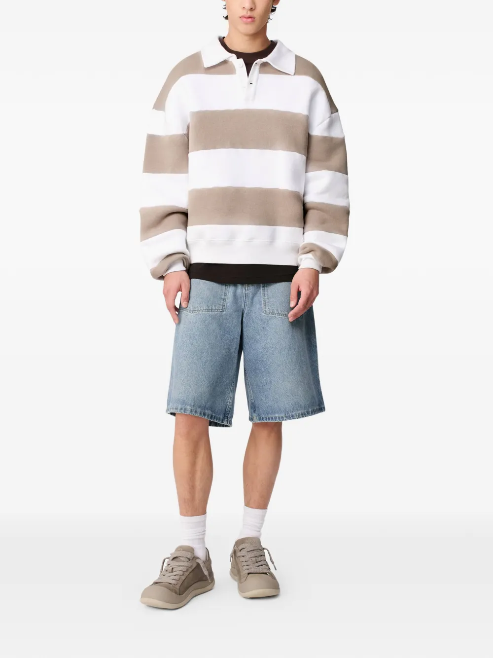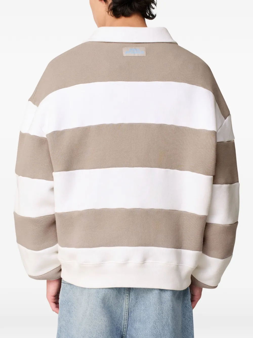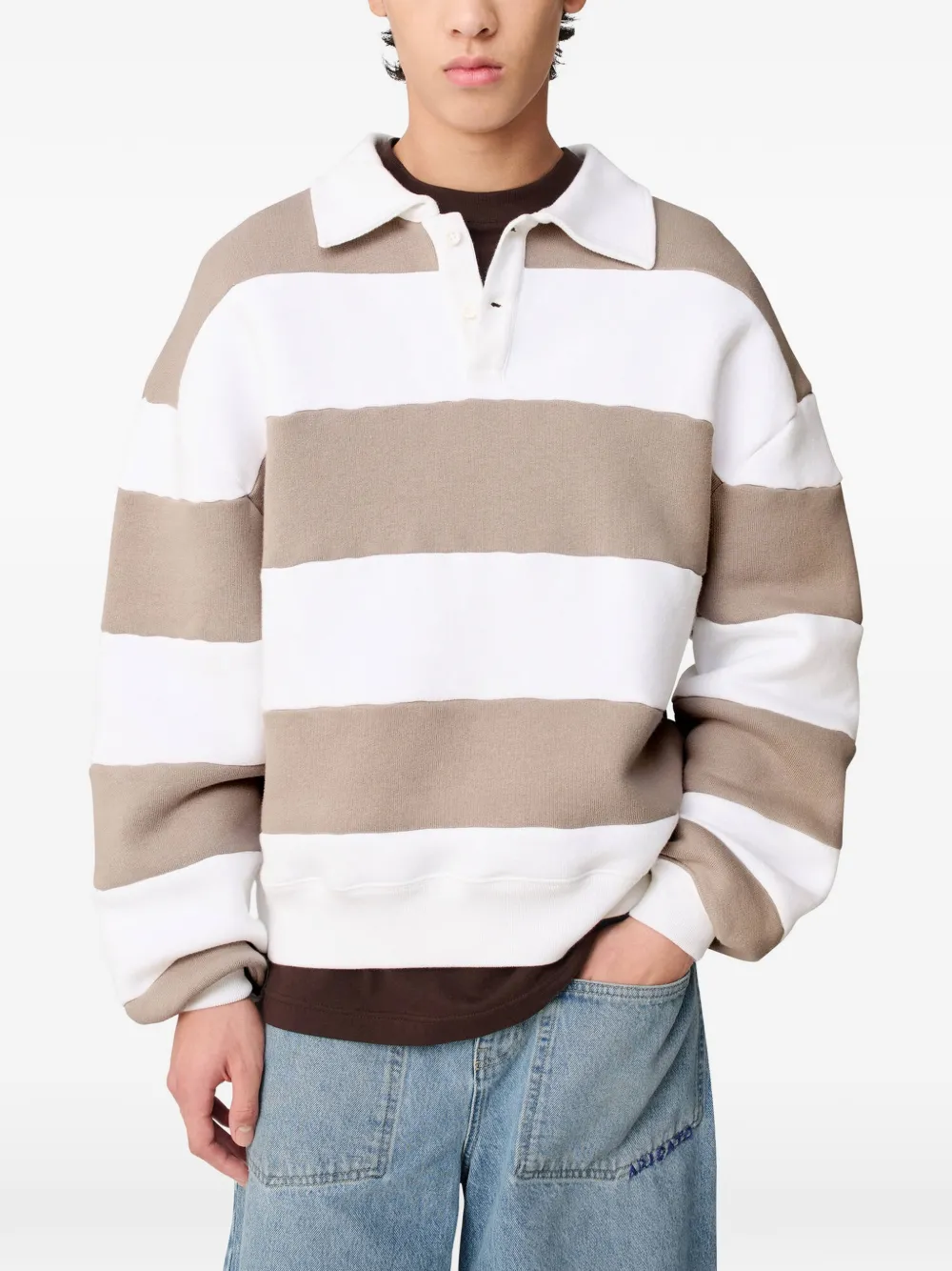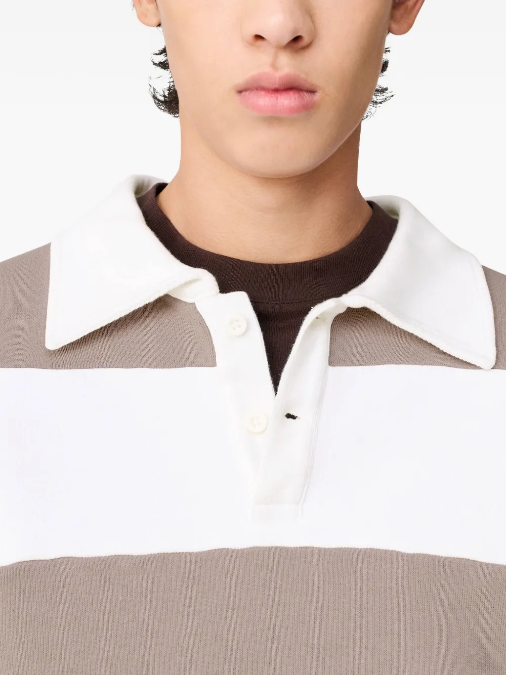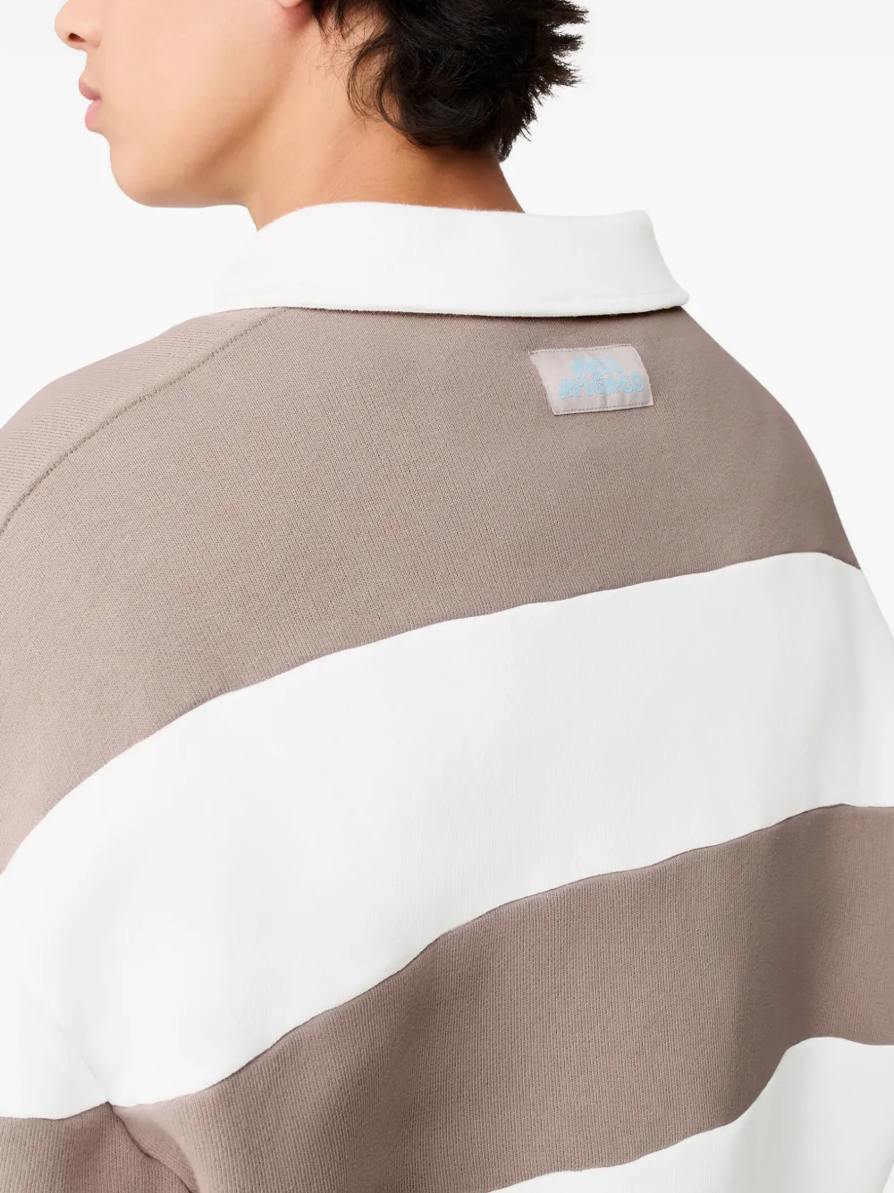 Белый/песочный, полосатый дизайн, воротник поло, частичная молния, длинные рукава, хлопок