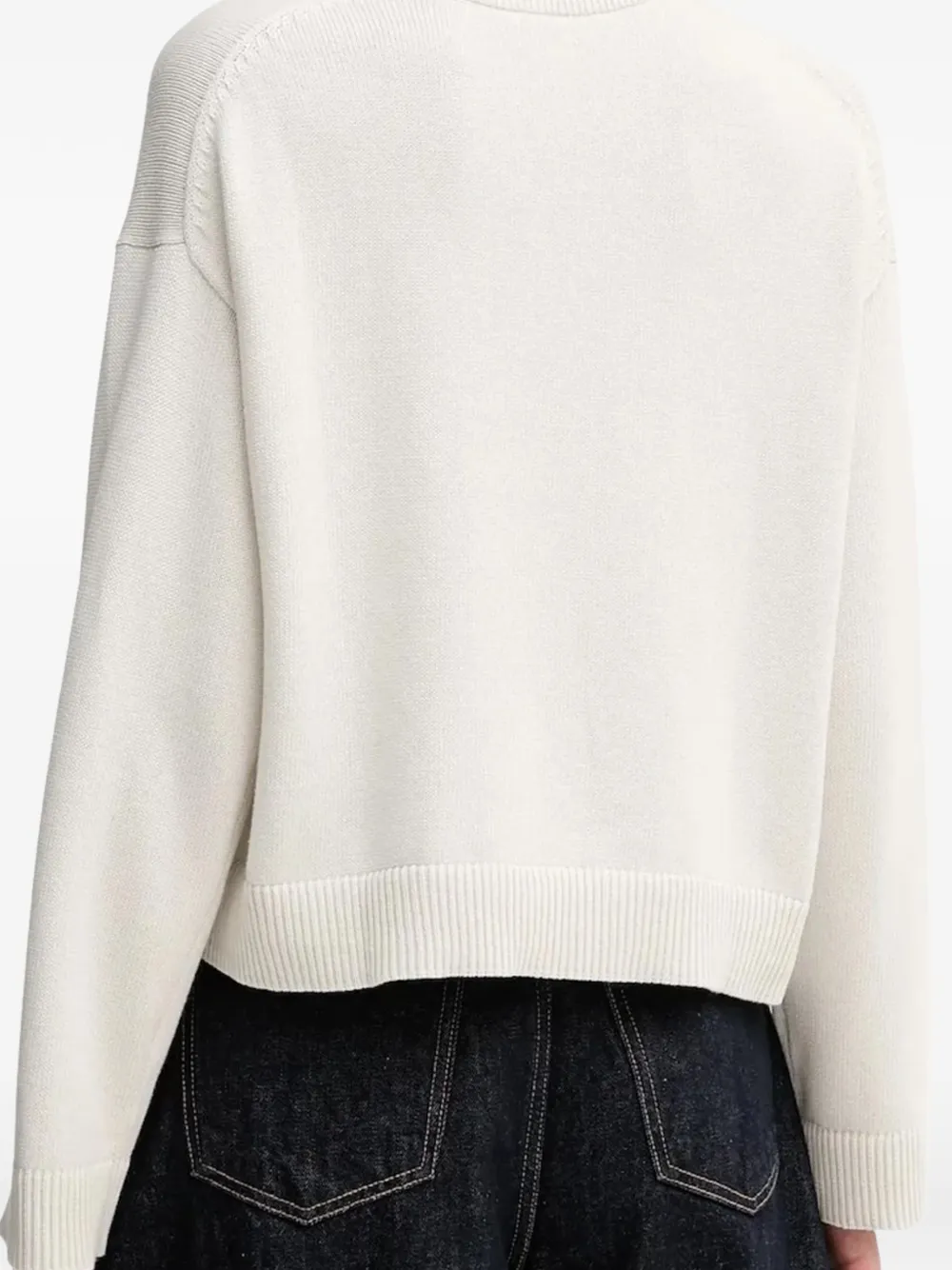 Бежевый круглый вырез, длинные рукава, рубчатые нижний край и манжеты