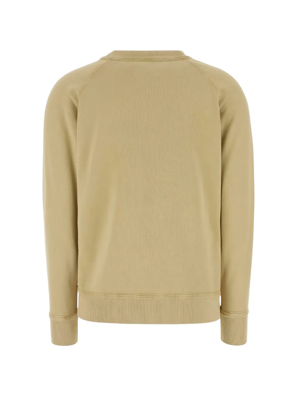 Бежевый цвет, логотипная деталь, круглый вырез, длинные рукава, ребристые манжеты, ребристый низ