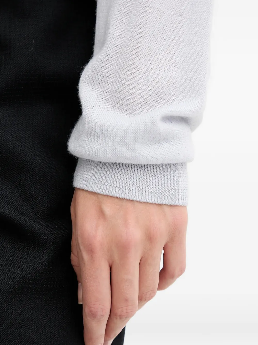 Серый пуловер с V-образным вырезом, длинными рукавами и рубчатыми отделками