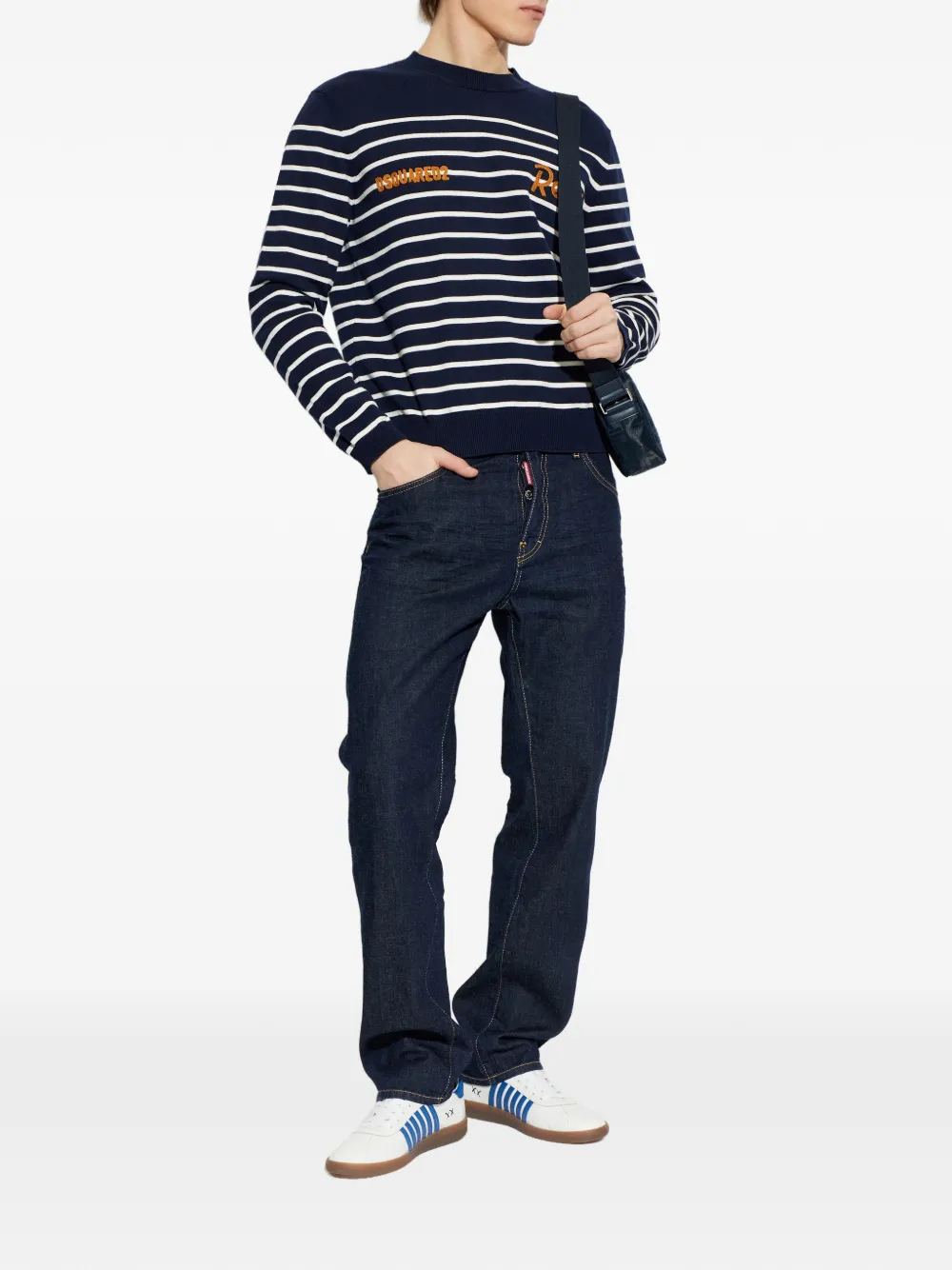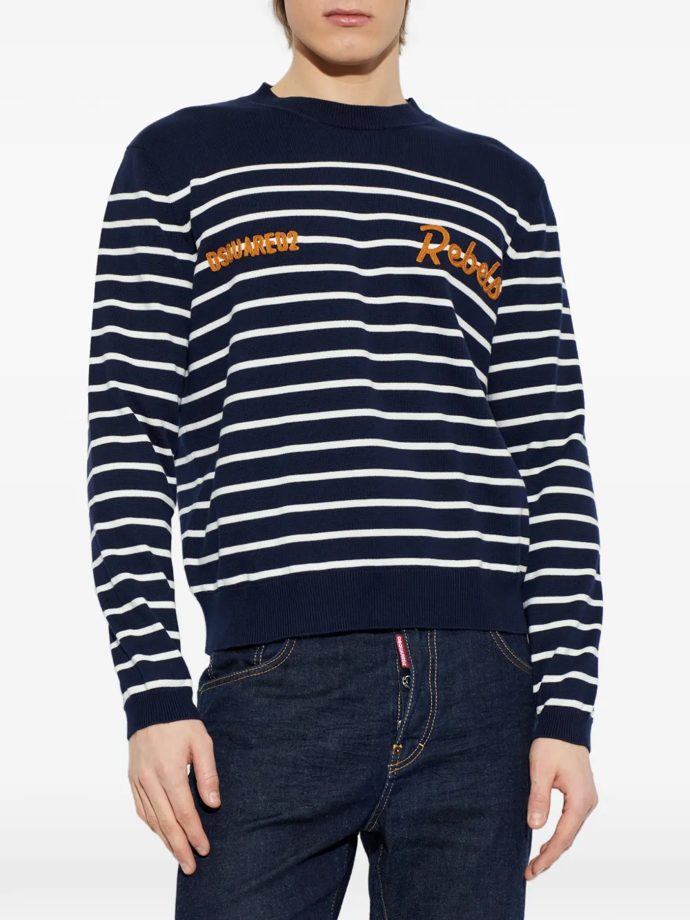 Полосатый свитер с круглым вырезом Dsquared2, синий