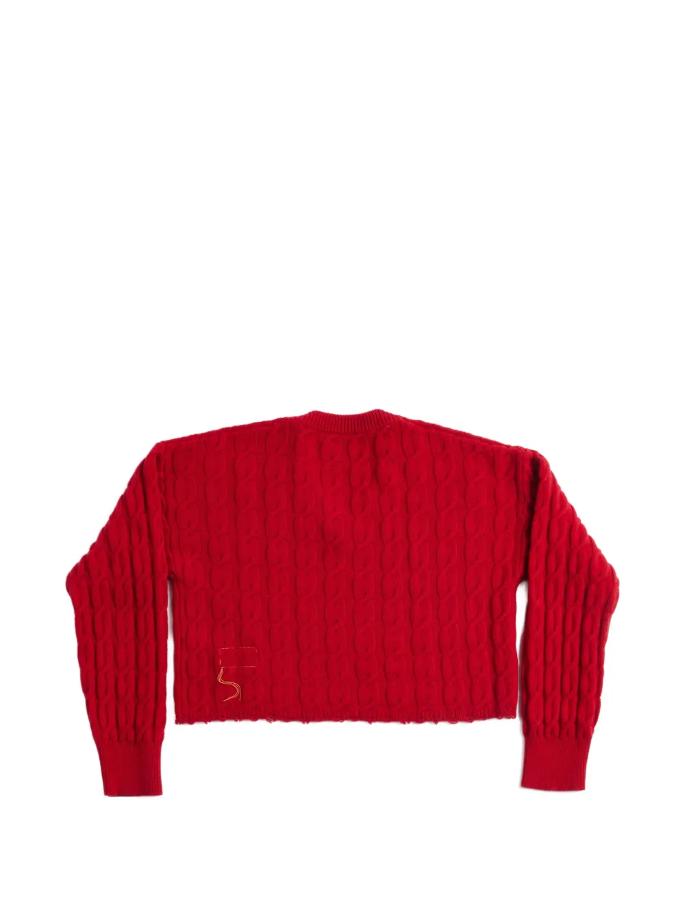 Красный укороченный вязаный пуловер с V-образным вырезом, необработанным краем и ребристыми отделками