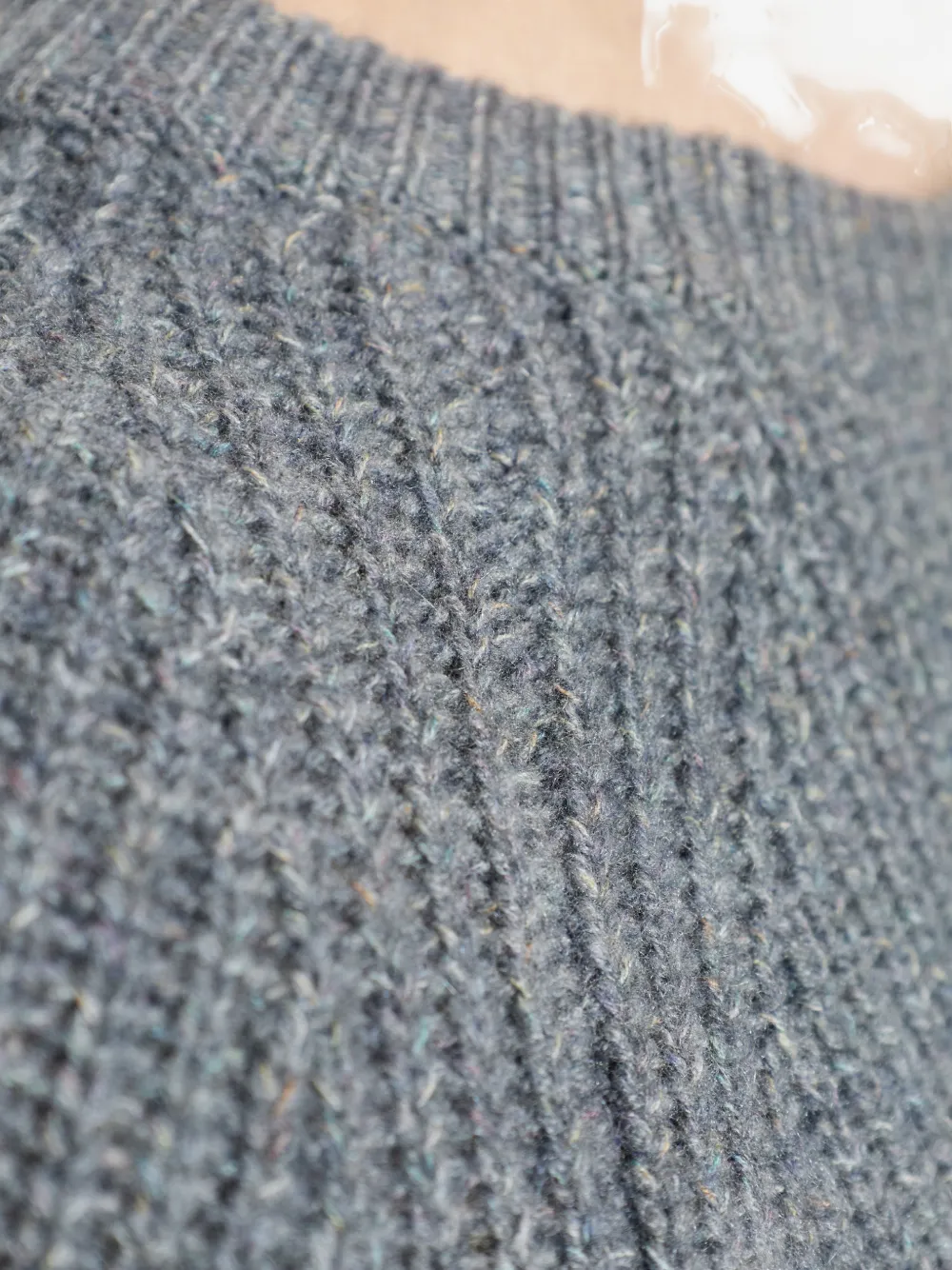 Серый вязаный джемпер в рубчик с регланом, круглым вырезом и длинными рукавами