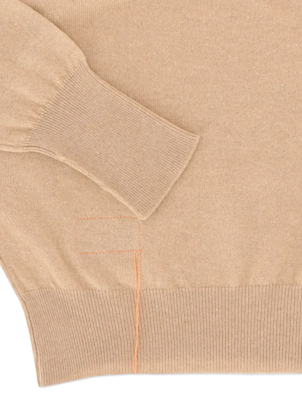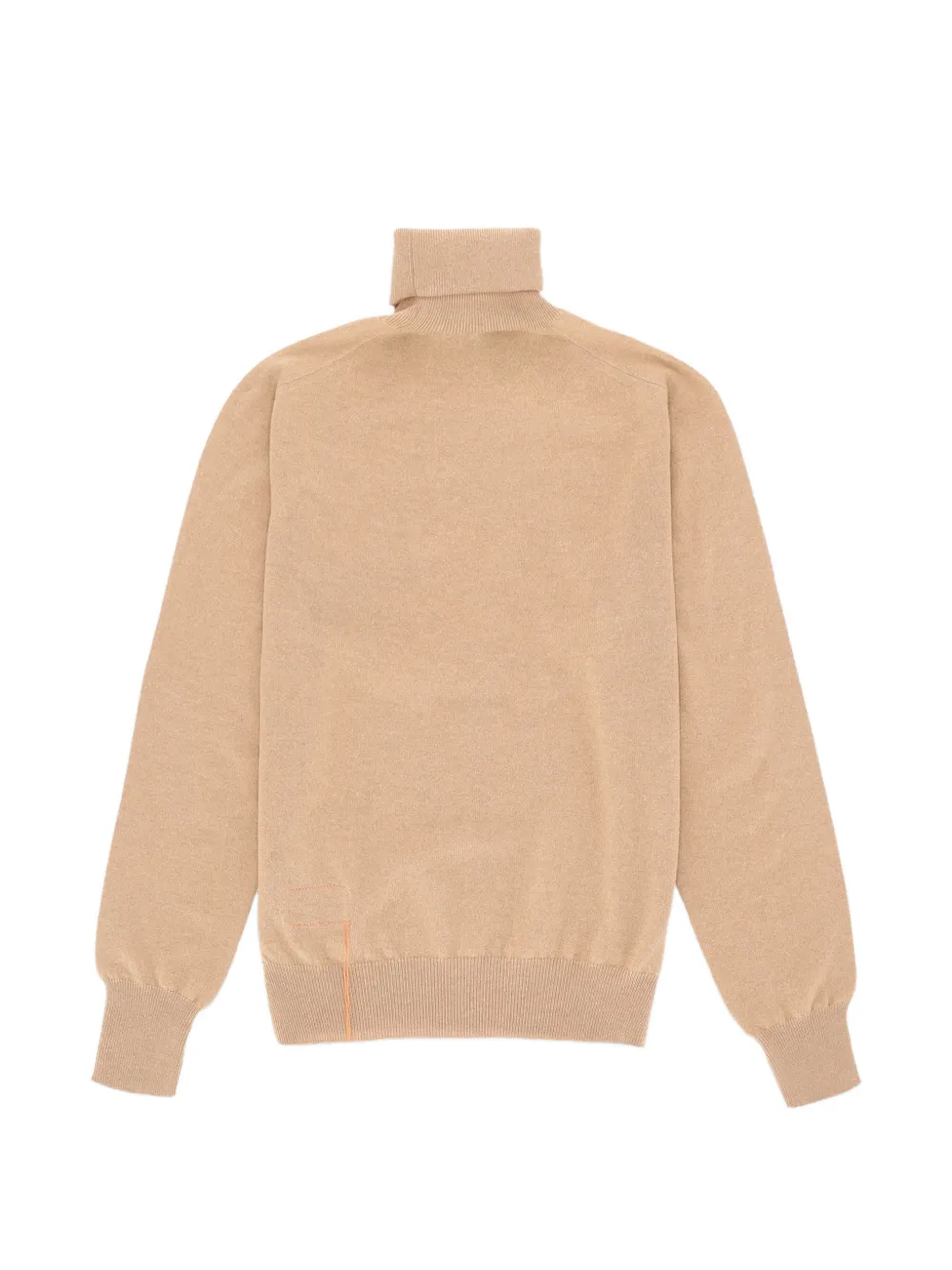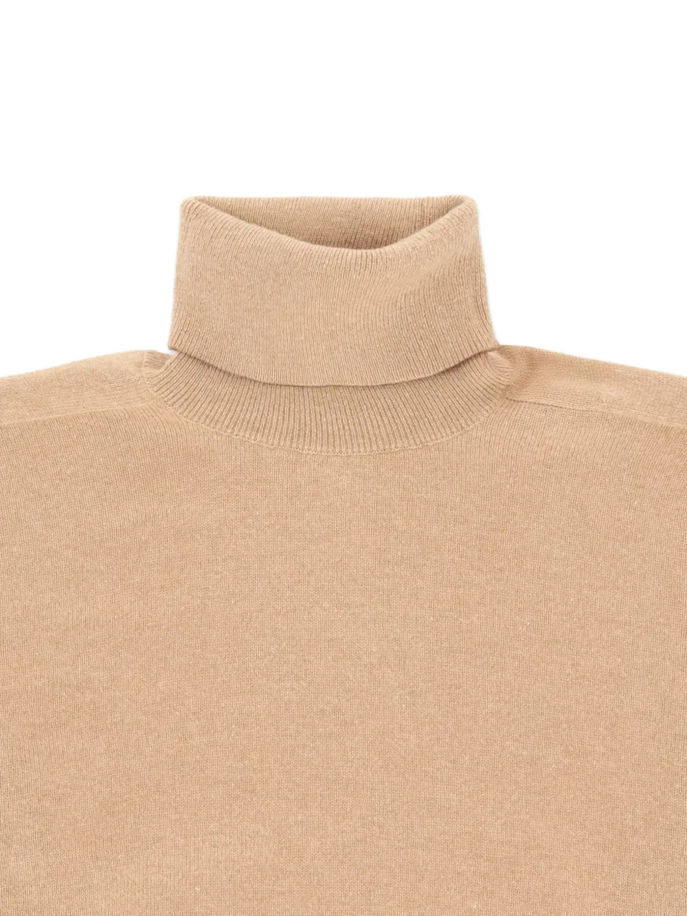 Бежевый высокий воротник, рукава-реглан, кашемир, вязаный в рубчик низ, вязаные в рубчик манжеты