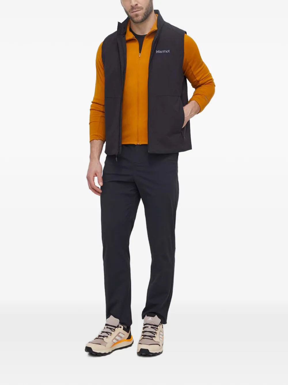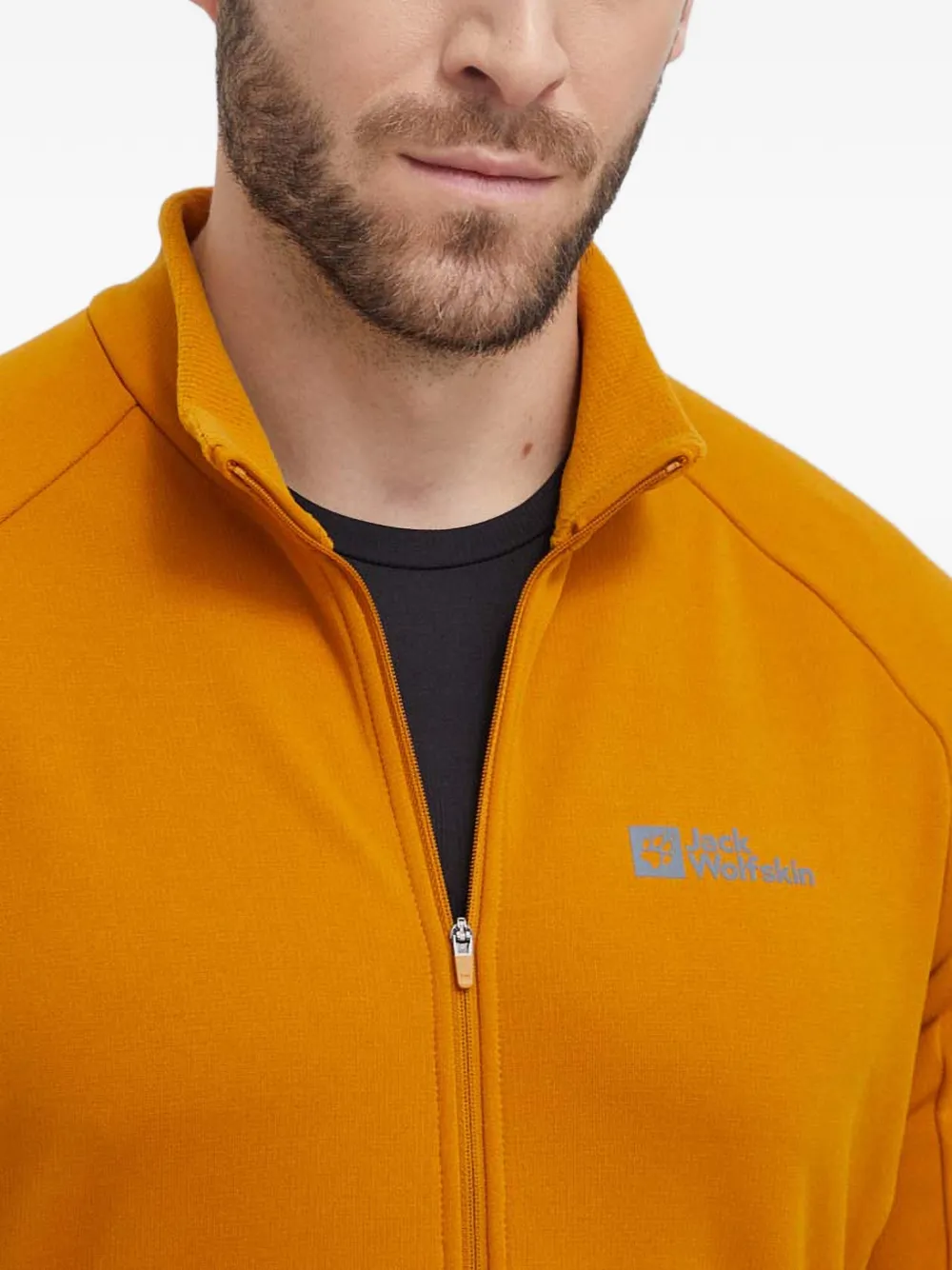 Оранжевая куртка на молнии с высоким воротником, логотипом и длинными рукавами