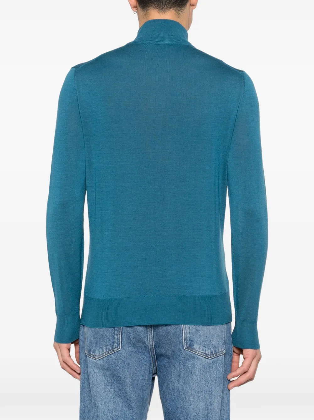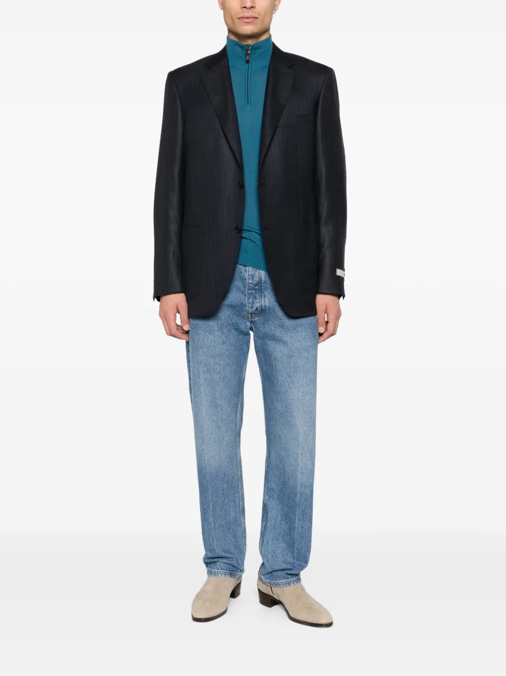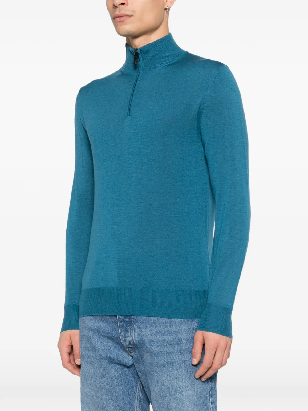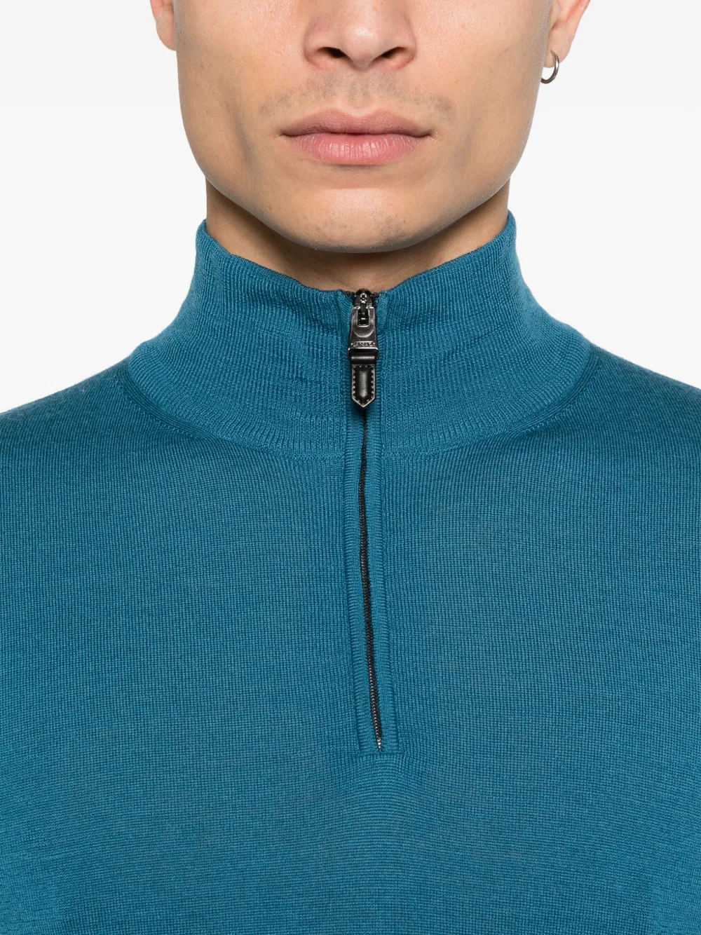 Синий, застежка-молния спереди, длинные рукава, ребристый край, ребристые манжеты