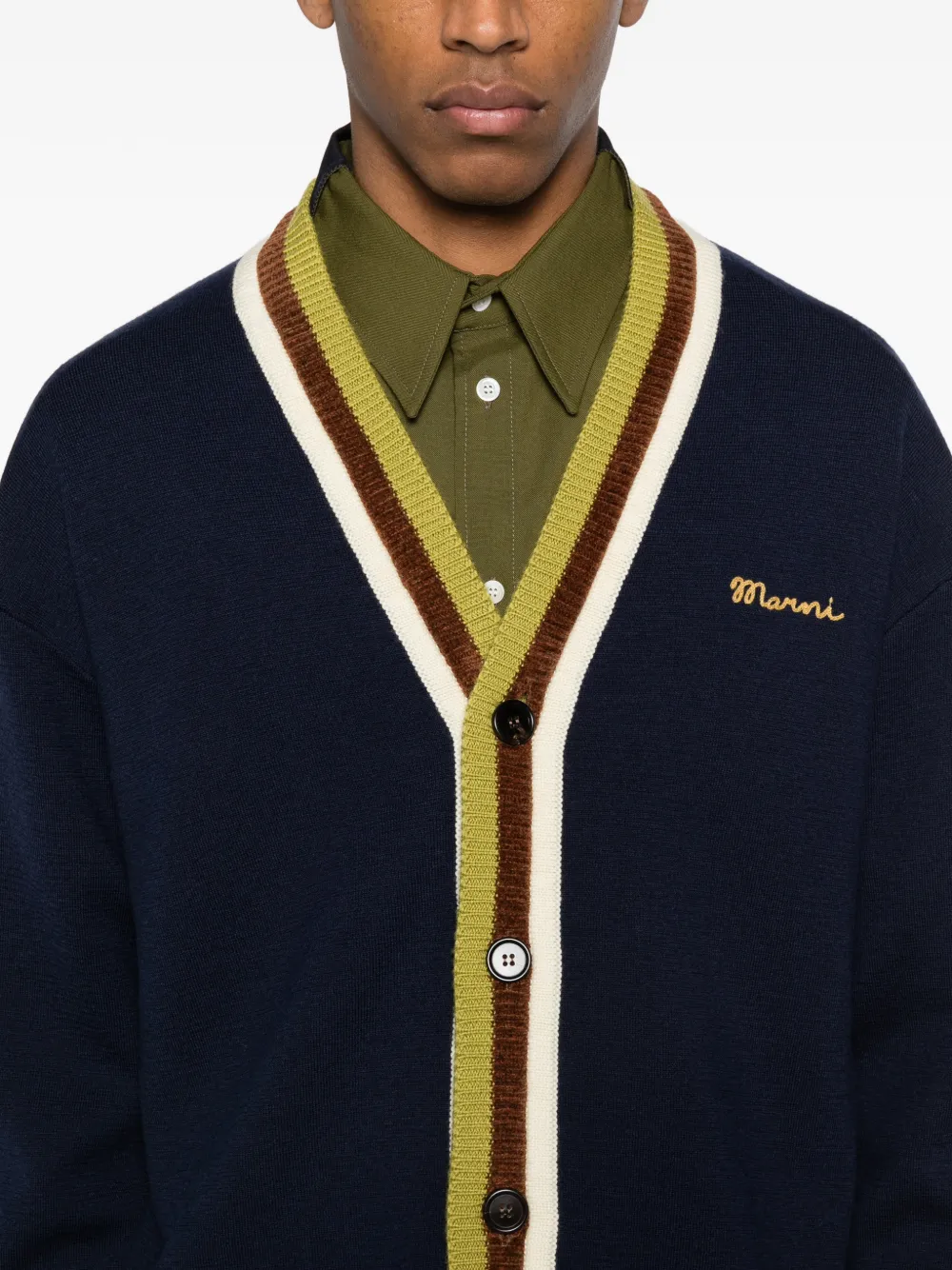 Вышитый полосатый кардиган Marni, синий