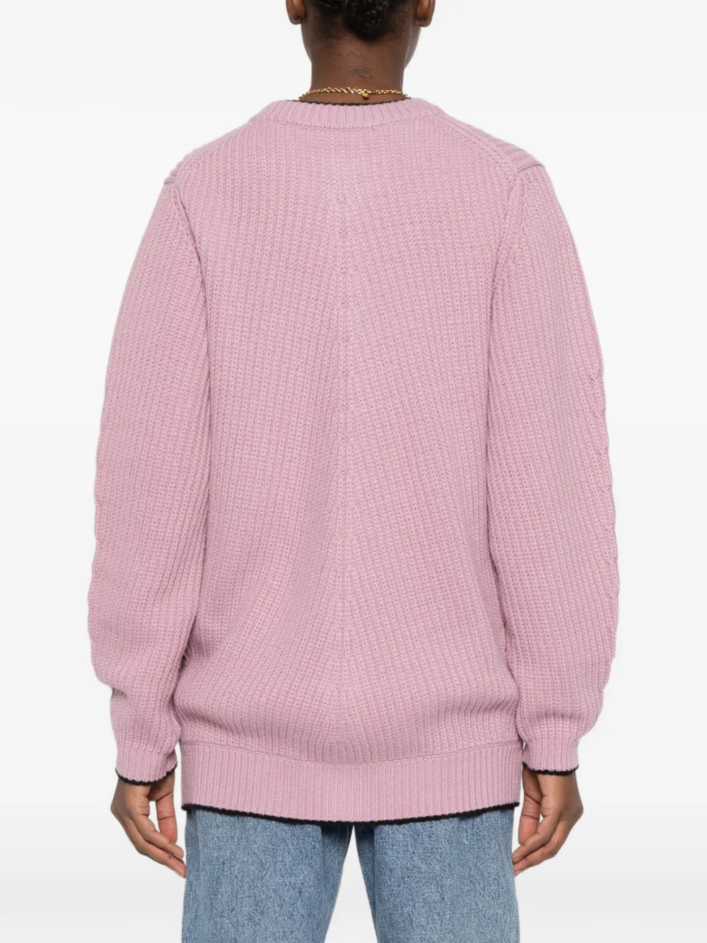 Туманно-сиреневый рубчатый трикотаж, застежка на пуговицы, логотип, круглый вырез, длинные рукава