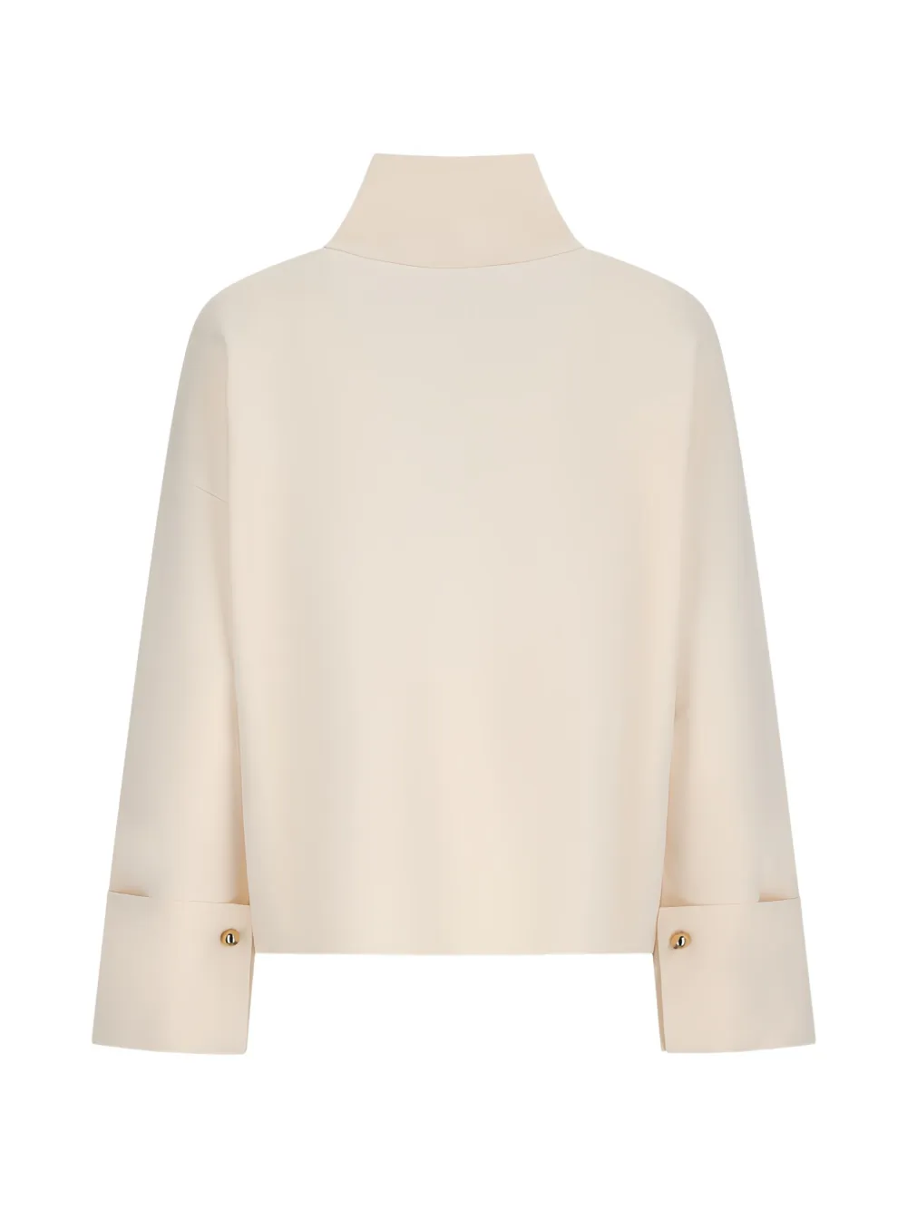 Слоново-белый цвет, застежка-молния, высокий воротник, длинные рукава, манжеты на пуговицах, прямой низ