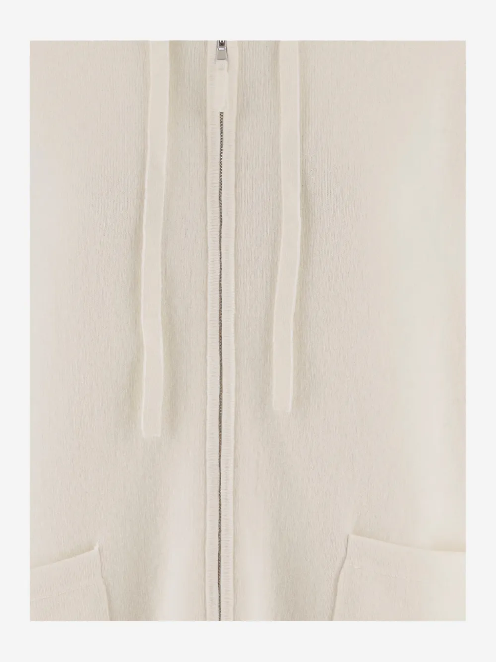 Белый капюшон, застежка-молния, длинные рукава, два кармана
