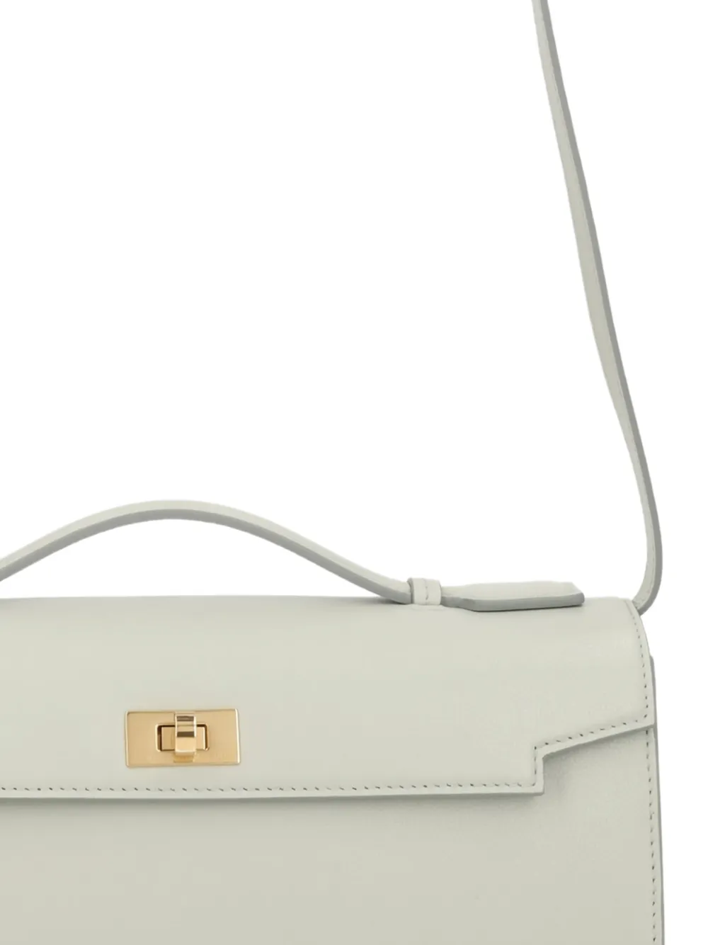 Светло-голубая сумка с короткой ручкой и фурнитурой золотистого цвета