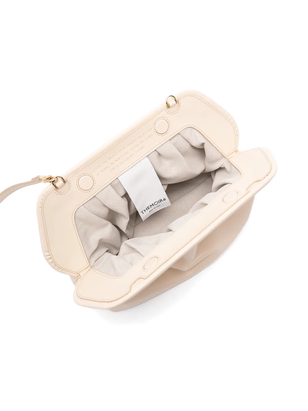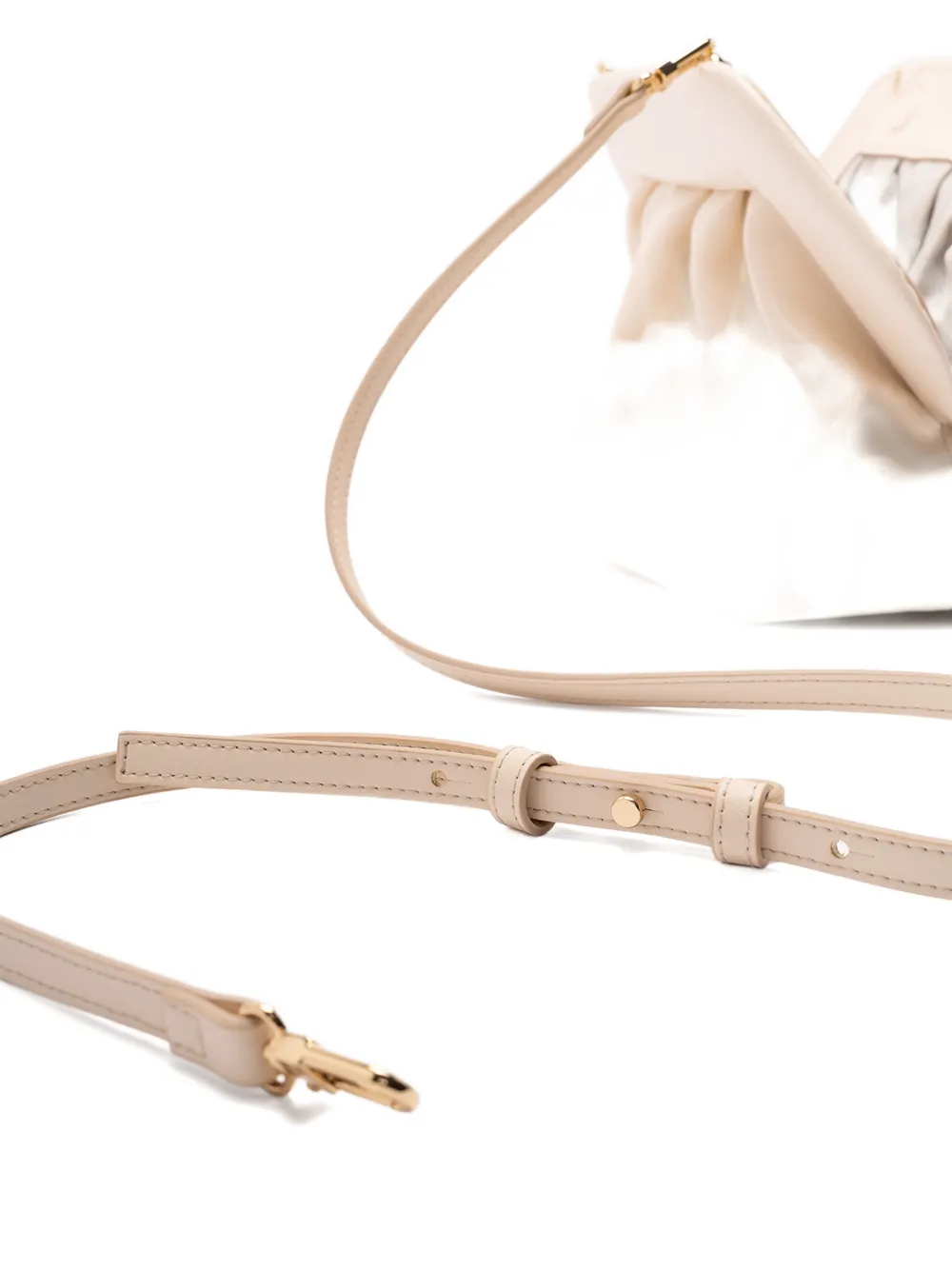 Кремовый цвет, сборки, регулируемый и съемный плечевой ремень, фурнитура золотистого оттенка