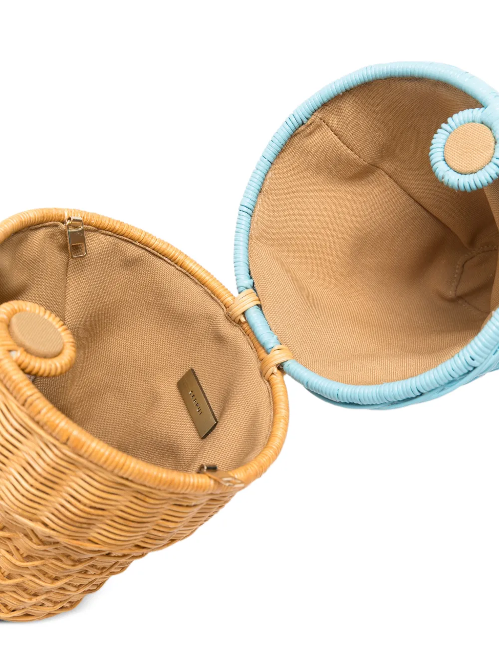 Бежевый и разноцветный, плетеный дизайн, верхняя ручка, ремешок-цепочка, застежка-защелка сверху