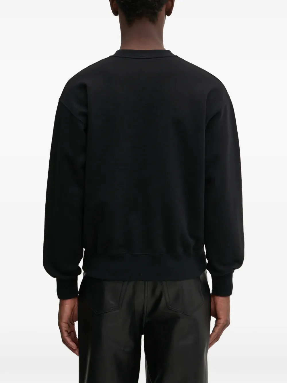 Черный свитер с круглым вырезом, длинными рукавами, ребристыми манжетами и подолом