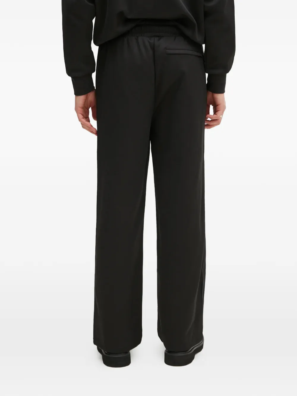 Черные прямые брюки с эластичным поясом и задним прорезным карманом