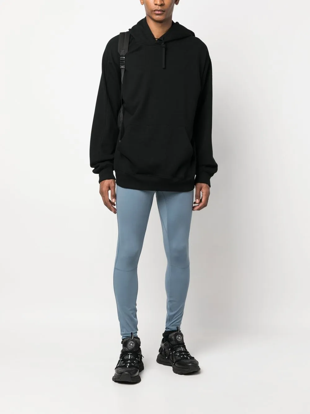Синий, смесовый переработанный полиэстер, эластичный материал, узкий облегающий крой, легкий материал, принт с логотипом, светоотражающие детали, швы, кулиска на талии и два накладных кармана по бокам.