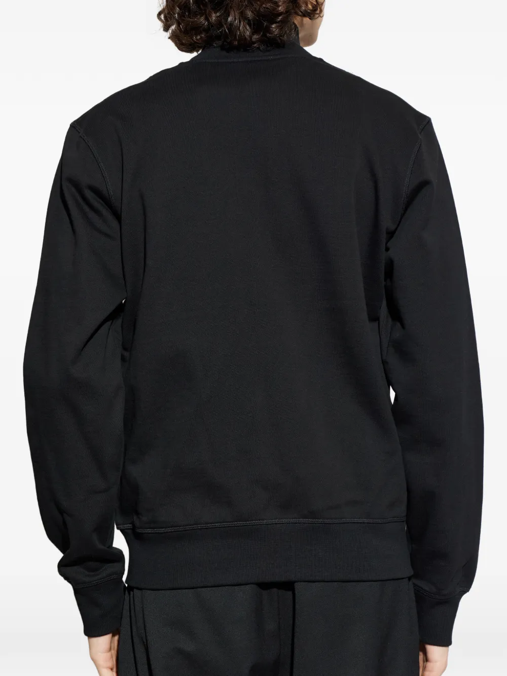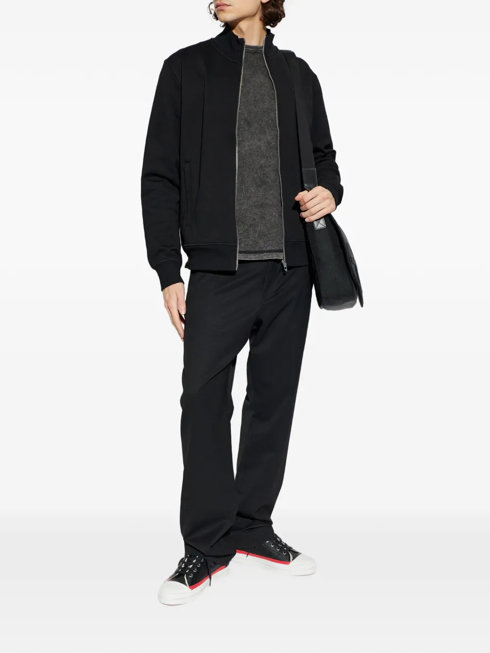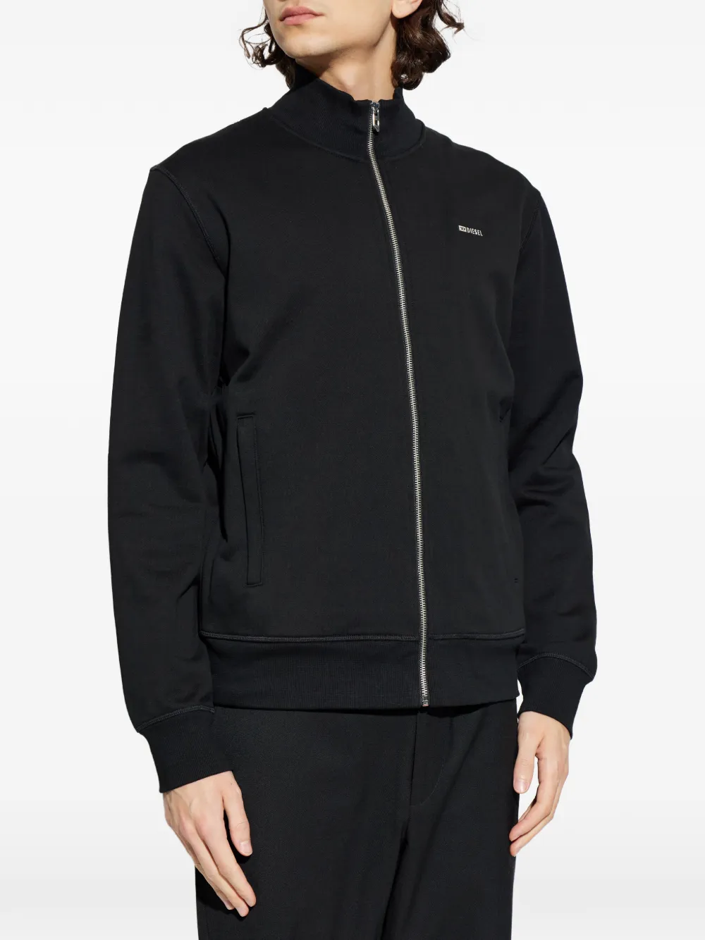 Черная молния, застегивающаяся до воротника-стойки, однотонный логотип-аппликация, рифленый низ, рифленые манжеты