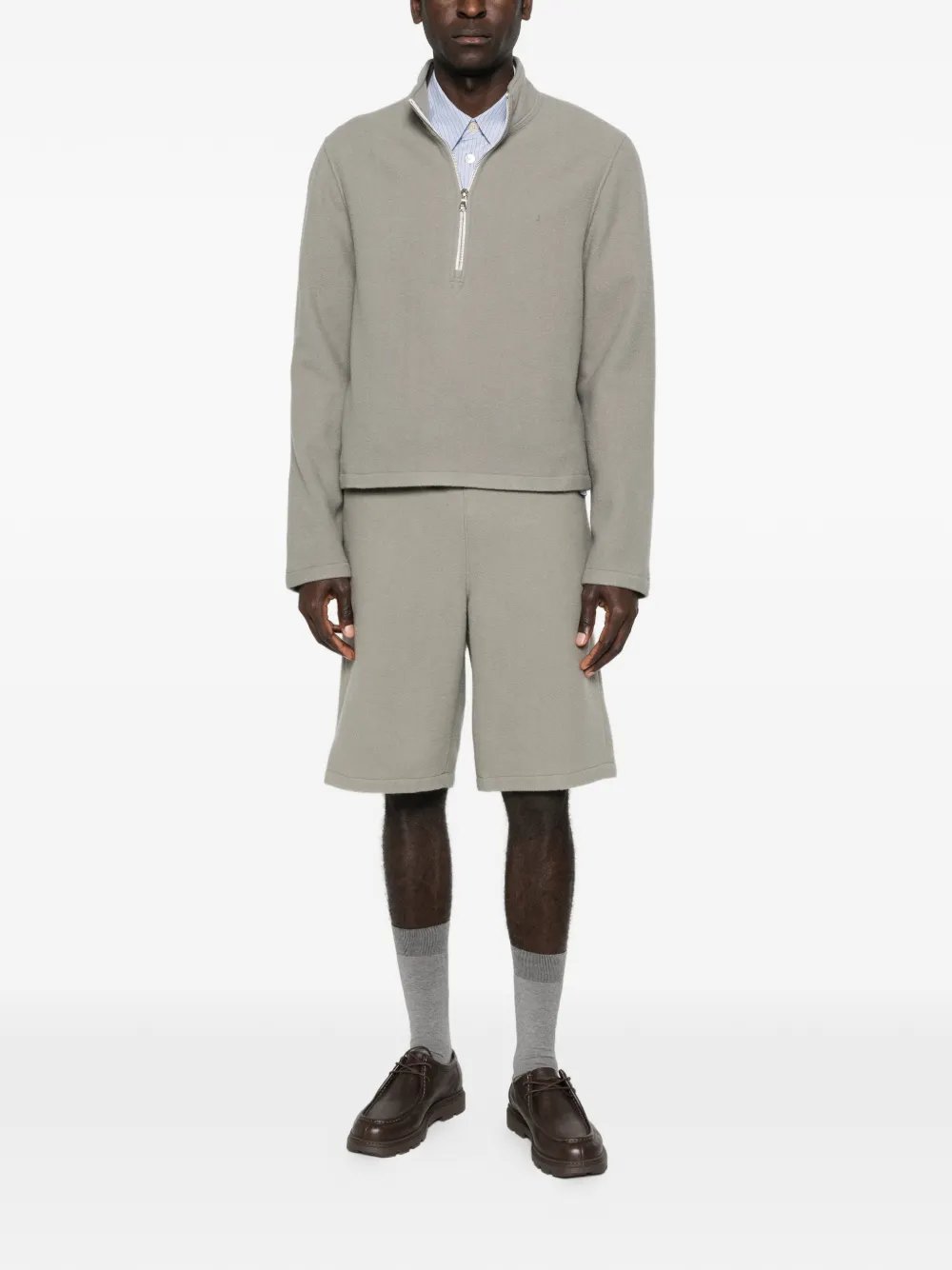 Серый флисовый топ с фактурой, застежкой на четверть молнии, стойкой и длинными рукавами