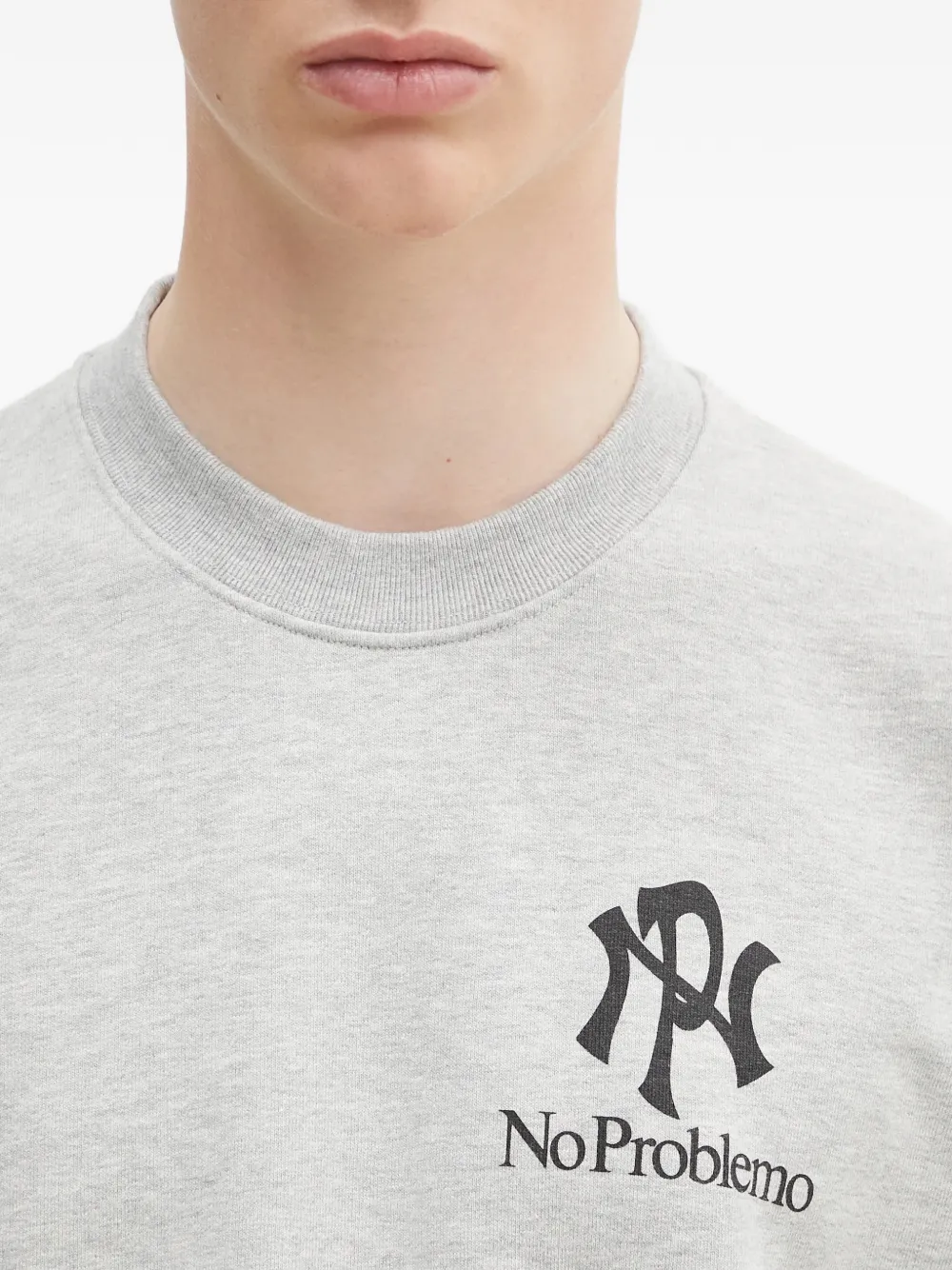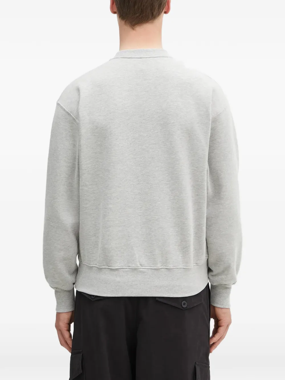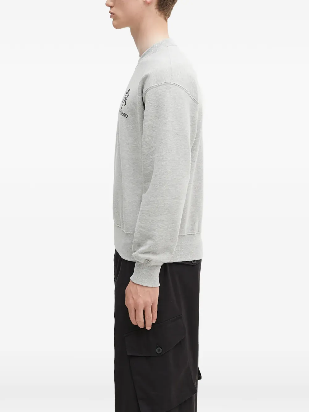 Серый джемпер с круглым вырезом, принтом-логотипом, длинными рукавами, ребристыми манжетами и ребристым низом
