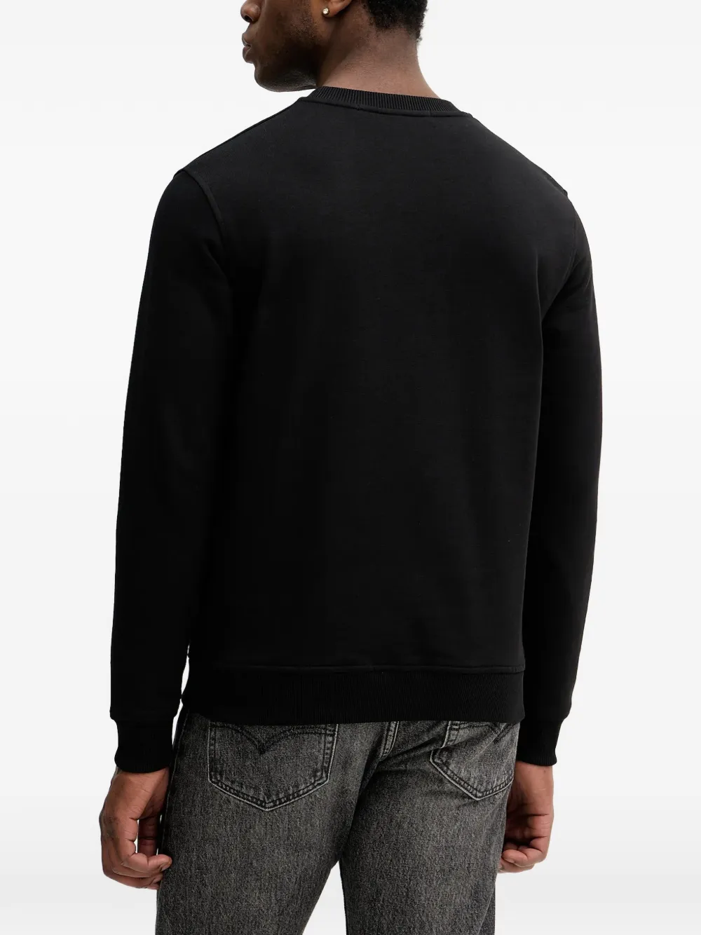 Черный свитшот с графическим принтом, круглым вырезом, длинными рукавами, ребристыми манжетами и подолом