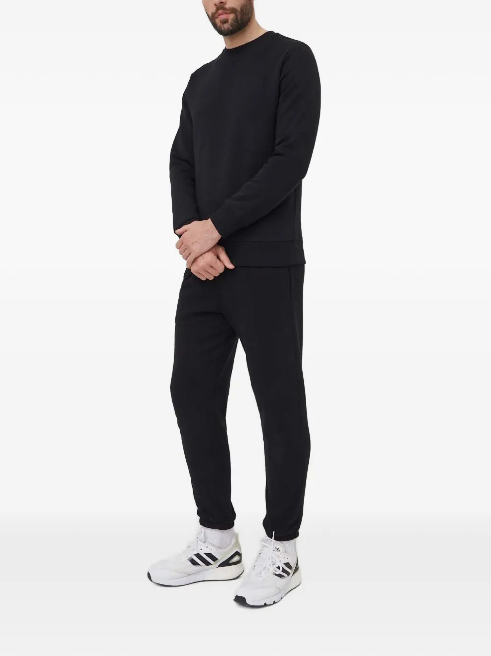 Черный свитшот с тиснеными элементами, круглый вырез, длинные рукава, ребристый подол, ребристые манжеты