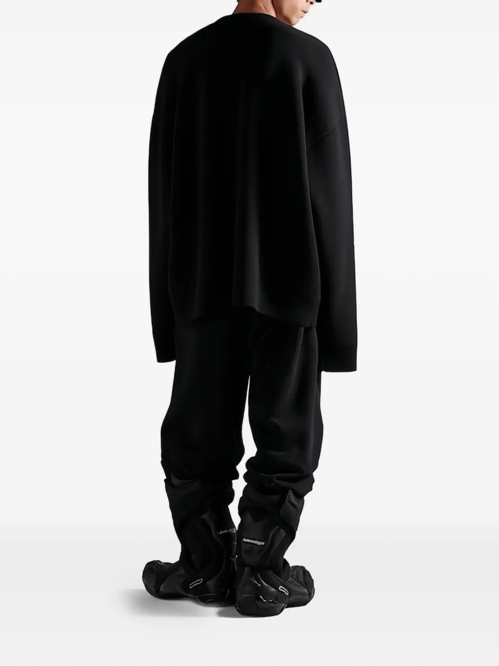 Черный свитер в рубчик с длинными рукавами, круглым вырезом и деталями с логотипом