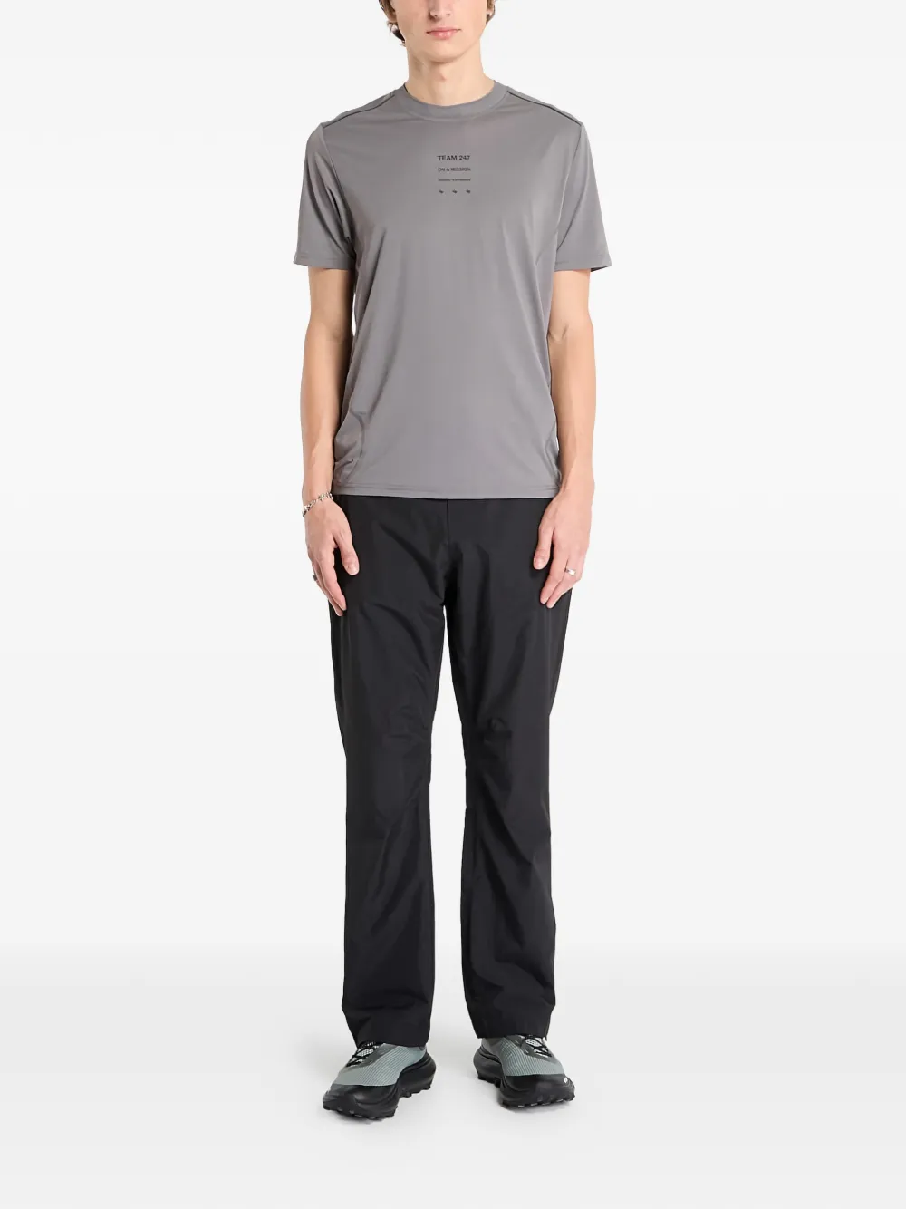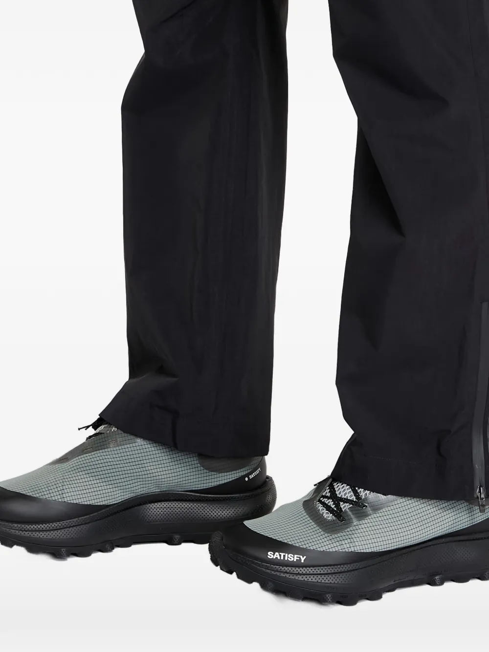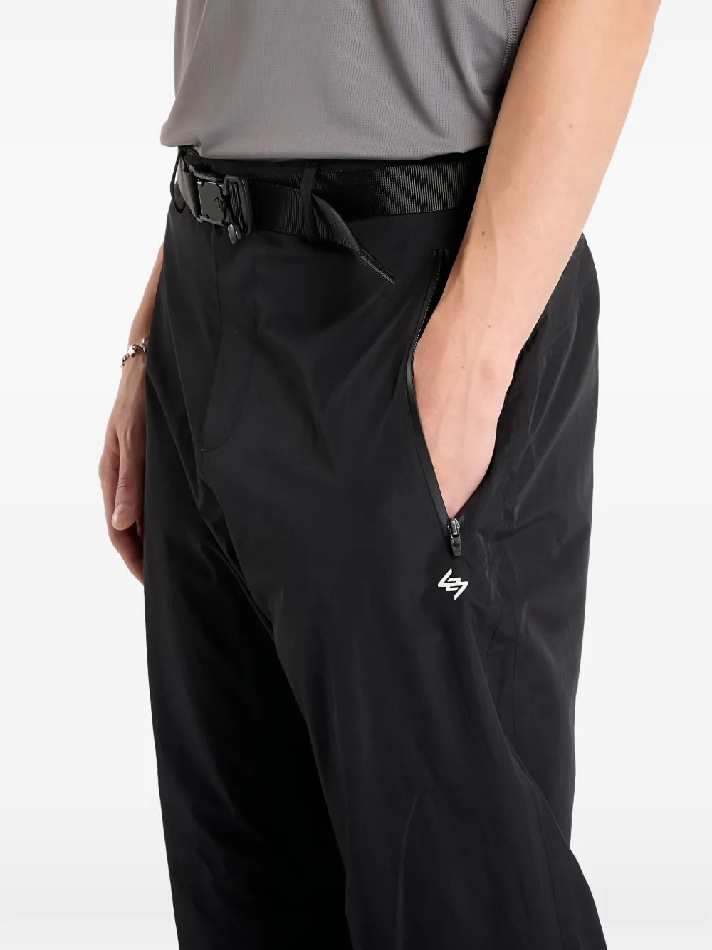 Черный цвет, застежка-молния сбоку, ремень, боковые карманы на молнии, тональная отделочная строчка, застежка-молния на щиколотке