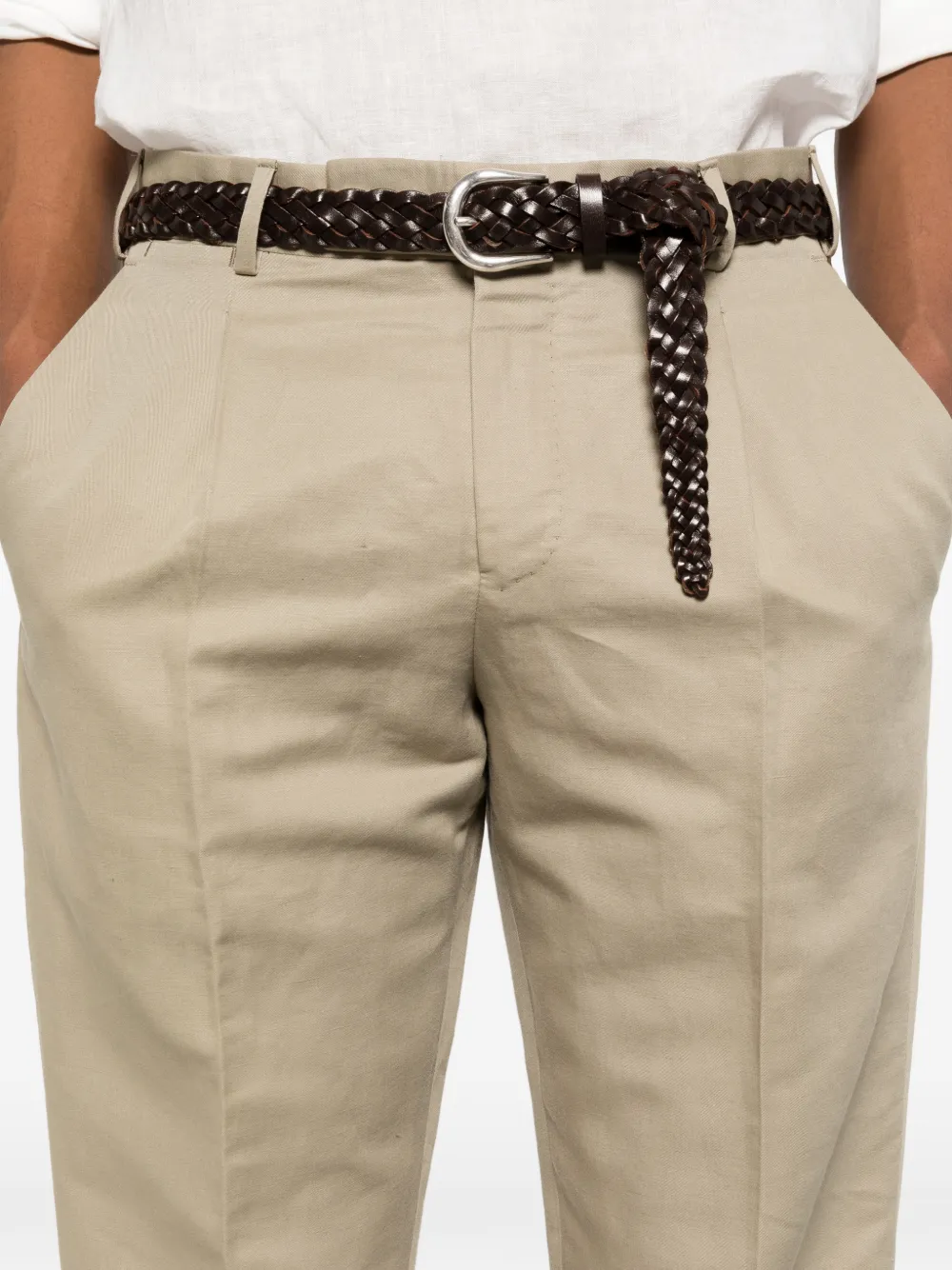 Бежевые шлевки для пояса, складки, боковые прорезные карманы, подрубленный край