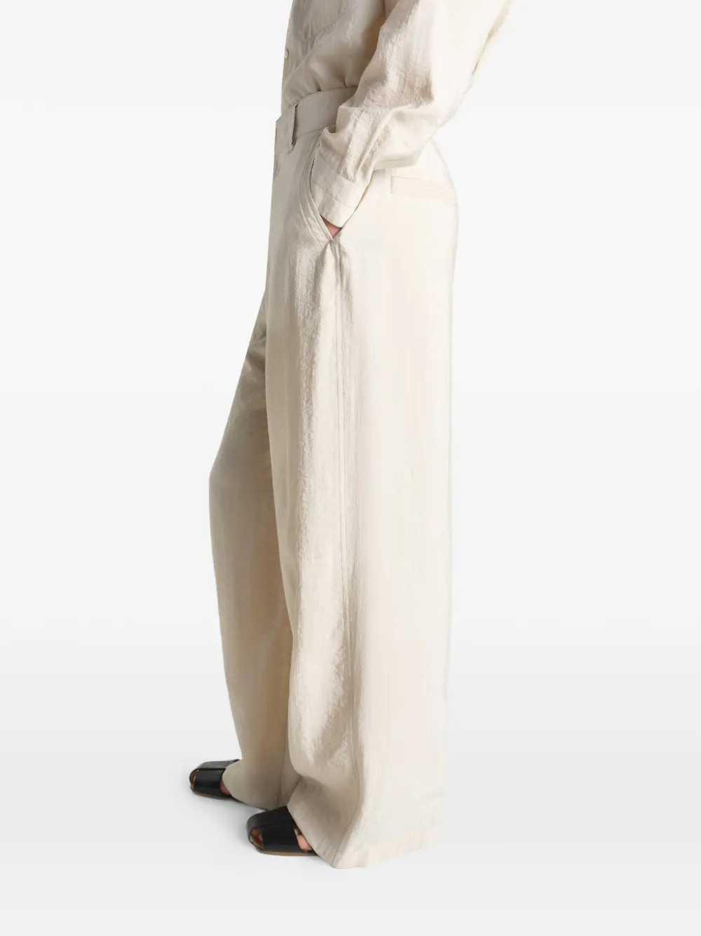 Овсяное молоко, эффект смятости, шлевки для пояса, боковые карманы, задний карман, прямые брючины